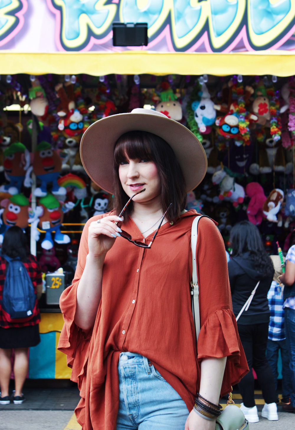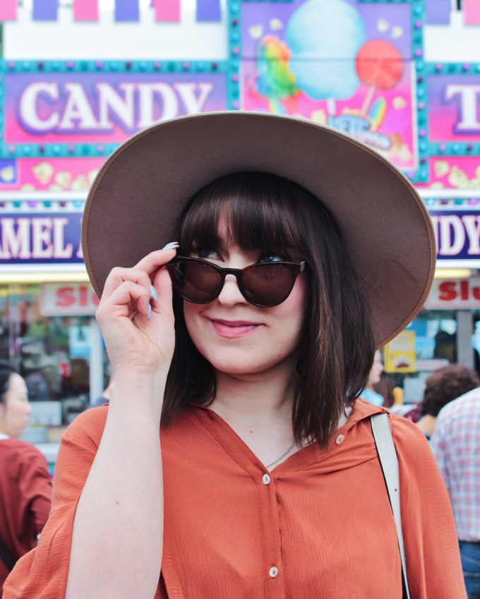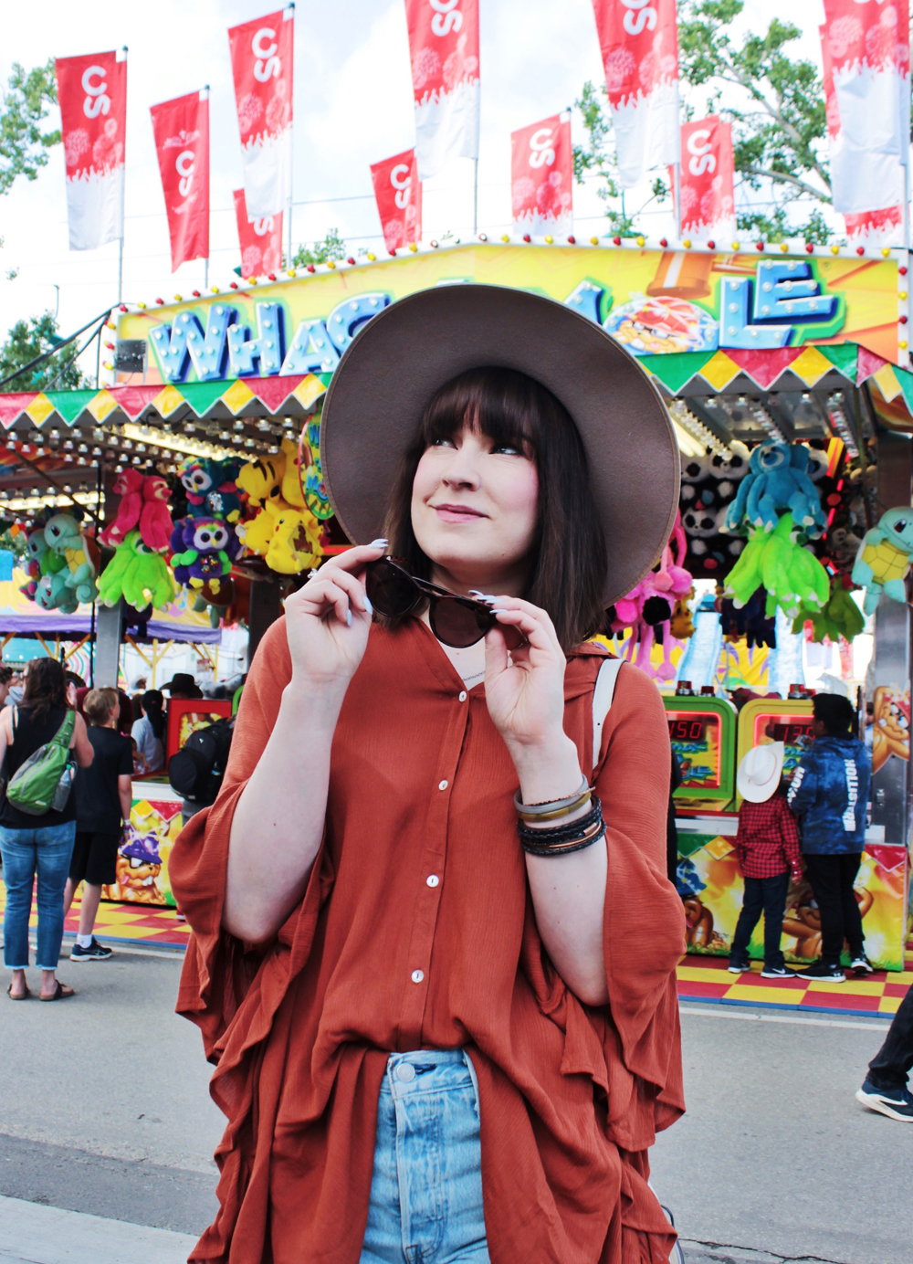 The Calgary Stampede is one of the major highlights of the summer here in Alberta. People come from all over the world for the rides, the rodeo, the music, and all the delicious food! While it’s not a requirement, adding a touch of western flare makes the whole experience even more fun! I don’t go too overboard when it comes to western wear, but this year I made sure I at least wore my rancher hat, and a pair of denim shorts. One part of the outfit that might get over looked, but is probably the most important, is a good pair of sunglasses! They’re not just for style, they’re crucial for the long-term care of your eyes. Just like your skin, your eyes need protection from those UV rays! This pair of sunglasses from Clearly.ca are my current favourite! I love the style, and they complement the rest of this look perfectly!