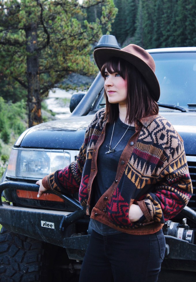 Outfit Details: Jacket: Free People / Jeans: Just Black / C/O Thursday Boot Co / Hat: Dorfman / Necklace: C/O Moon Raven Designs