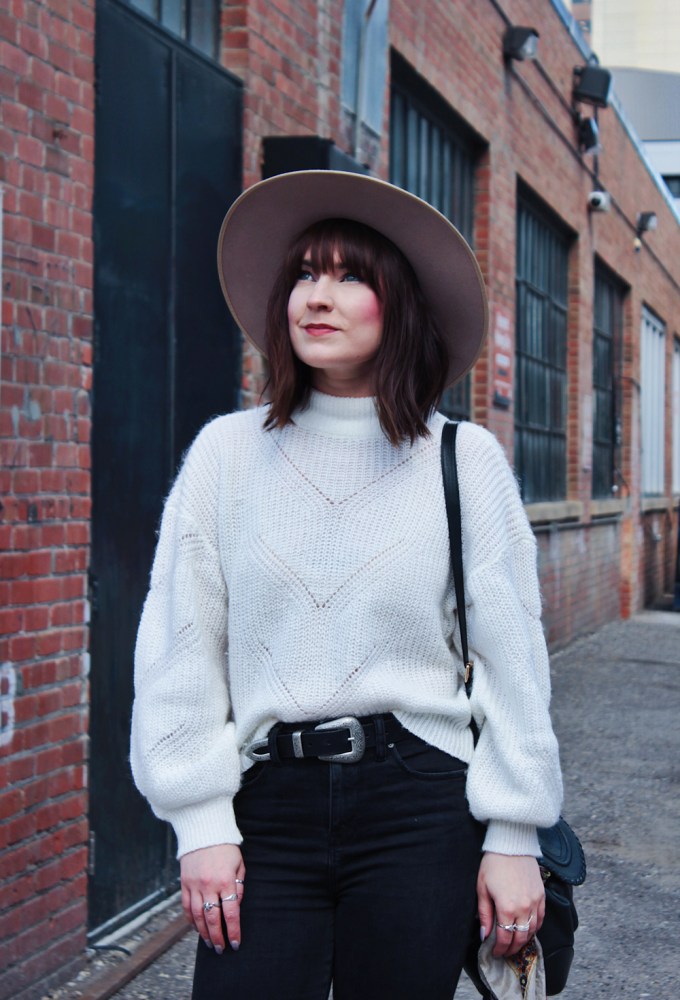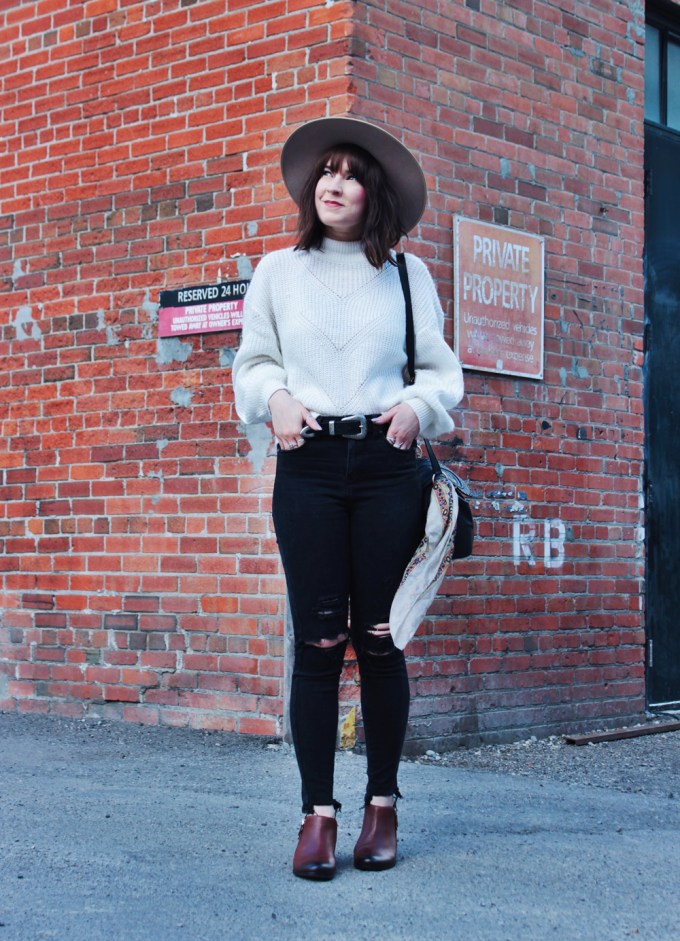 Outfit Details: Sweater: RDI / Jeans: Silver / Booties: C/O Vionic Shoes / Hat: Lack Of Color / Bag: See By Chloe