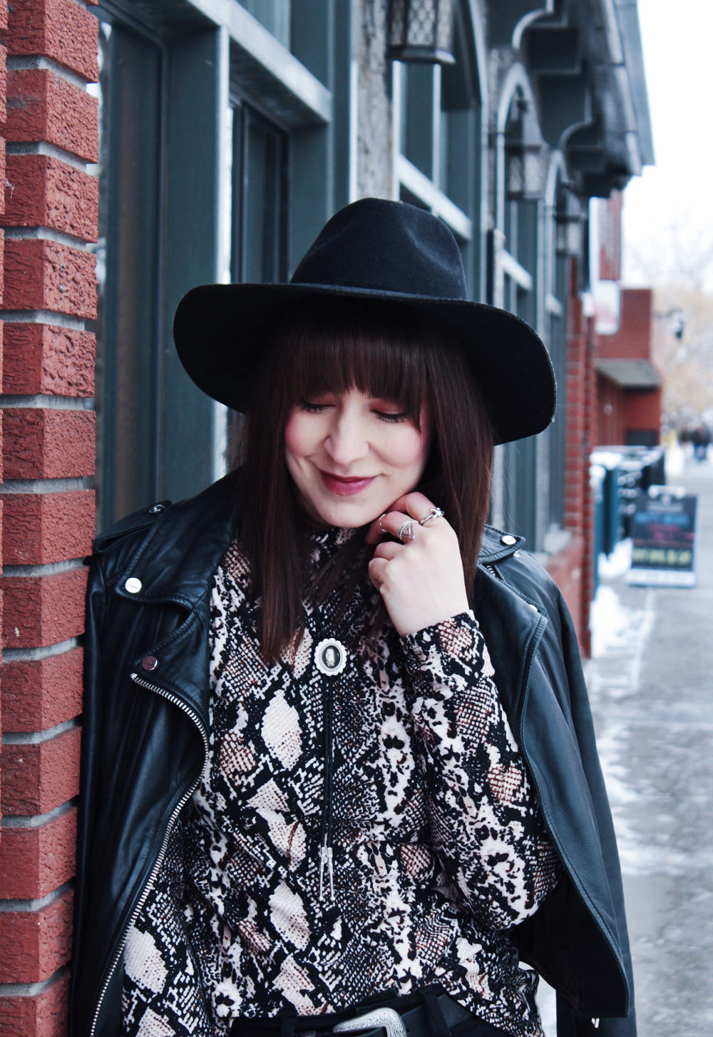 Outfit Details: Top: Simons / Hat: Lack of Color /Jacket: Lamarque / Boots: C/O Thursday’s / Bolo: Free People
