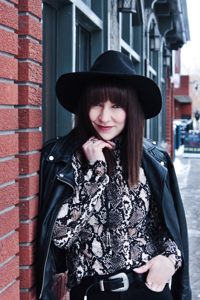 I don’t know about you, but I love a good animal print. I’m really glad that it’s made a comeback in fashion, and I hope that it’s here to stay! As for the specific types of animal print, i’ve always liked the classic leopard print, but lately i’ve really been getting into snake print as well! This top from Simons is one of my current favourites, I love the pattern and the fit! For the rest of look, I chose to keep the colours neutral, with black and off white.