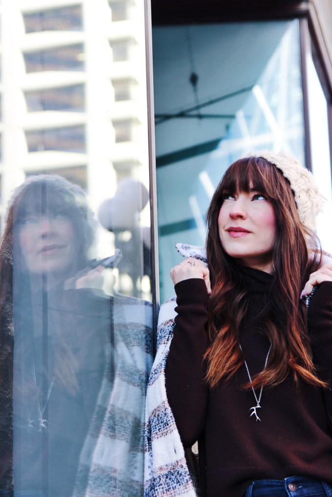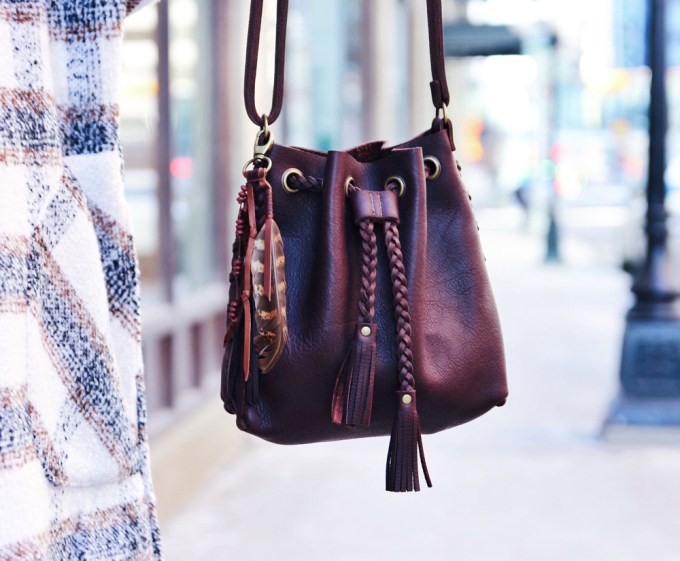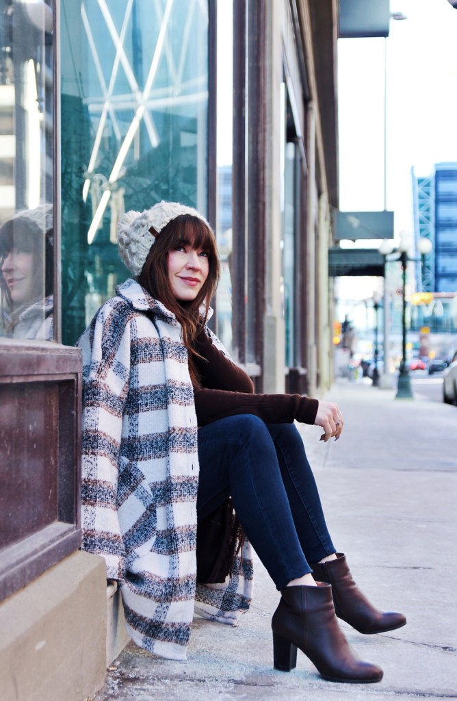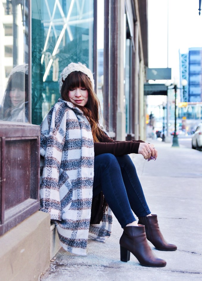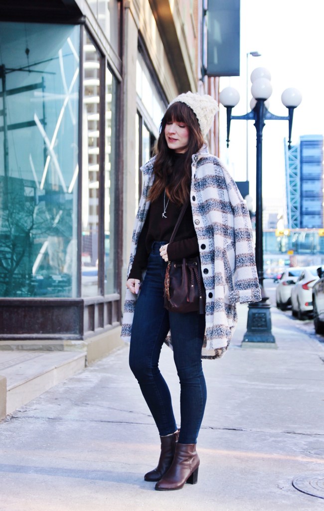 One of my favourite trends for this fall and winter season is the shacket. It’s the perfect item for days when the weather is too cold for just a sweater, but not warm enough to go without a coat. It’s a great casual style that’s cute, comfortable and perfect for everyday wear. For the rest of this look, I kept things simple with a knit beanie, and my favourite ankle boots. To accessorize, I added this beautiful hand made bucket bag by Love Art Soul!