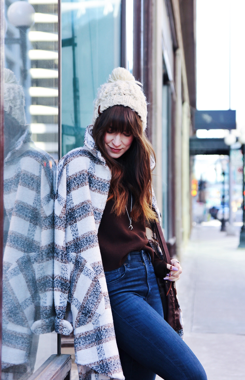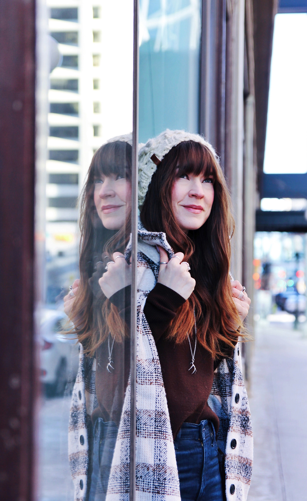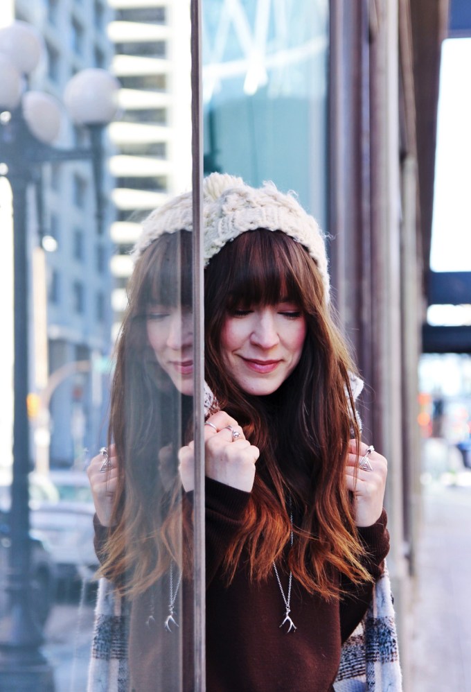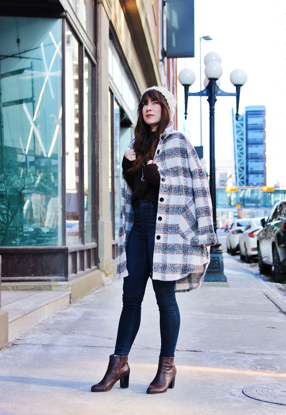 One of my favourite trends for this fall and winter season is the shacket. It’s the perfect item for days when the weather is too cold for just a sweater, but not warm enough to go without a coat. It’s a great casual style that’s cute, comfortable and perfect for everyday wear. For the rest of this look, I kept things simple with a knit beanie, and my favourite ankle boots. To accessorize, I added this beautiful hand made bucket bag by Love Art Soul!