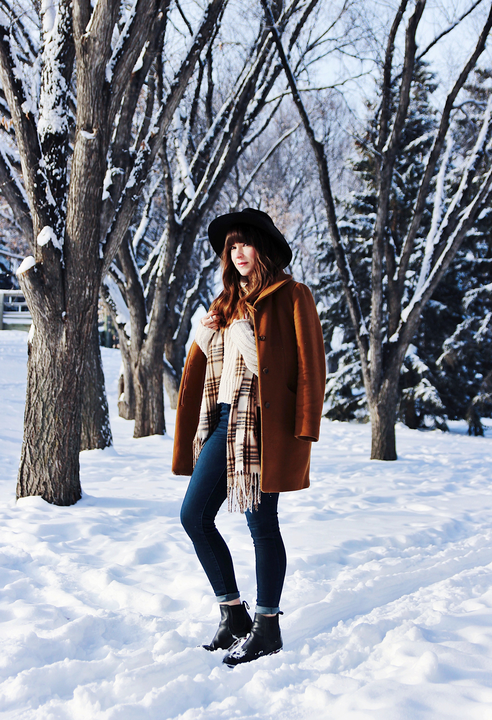 It snowed quite a bit in Calgary over the past few weeks, and it’s turned my favourite park into a beautiful winter wonderland! Naturally I had to dust off this old wool coat and take some photos! I’ve had this coat for a few years now and it’s held up really well! I suppose that’s the benefit of investing in good quality pieces. One of my goals for this upcoming year is to spend less money on clothing, as well as other items that don’t fall into the essential category for me. I’m going to try and style some of my old favourites in ways that are fresh, and that I haven’t done before. I know it’s not realistic to say that i’ll quit buying new clothing altogether because honestly I just don’t want to. I think scaling back my shopping is the perfect compromise, it will help me save money, while allowing myself to buy the things that I really want every now and then.