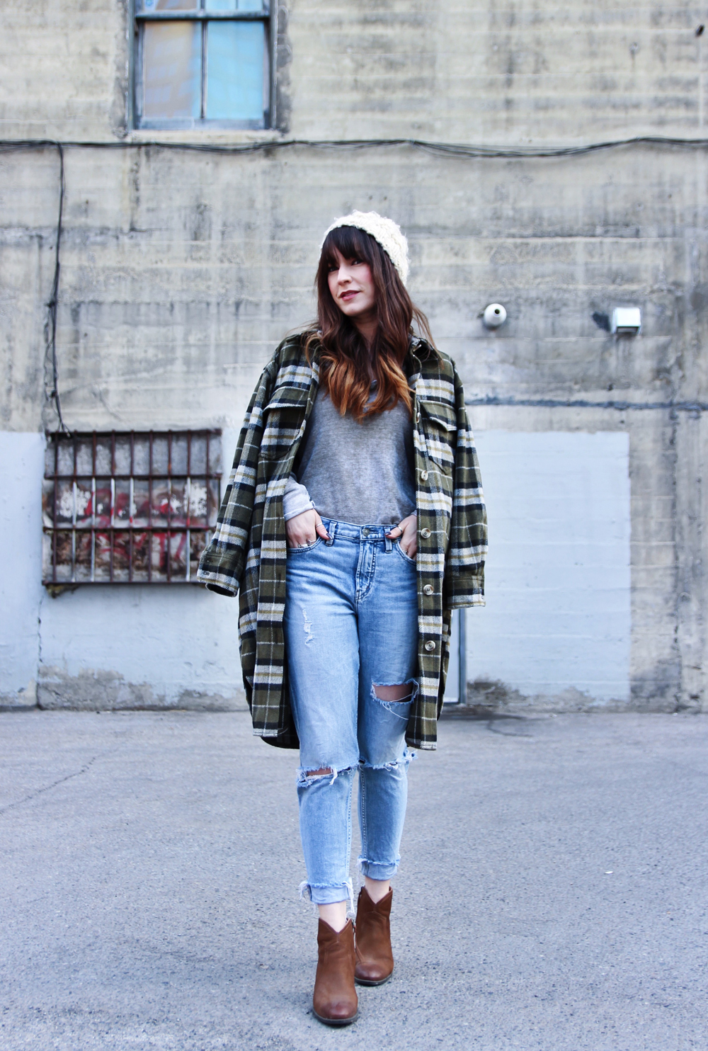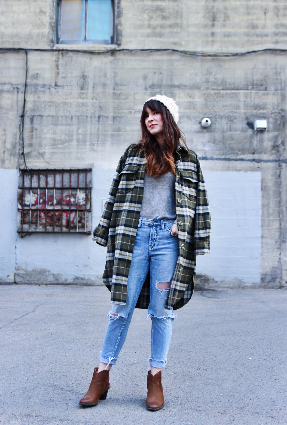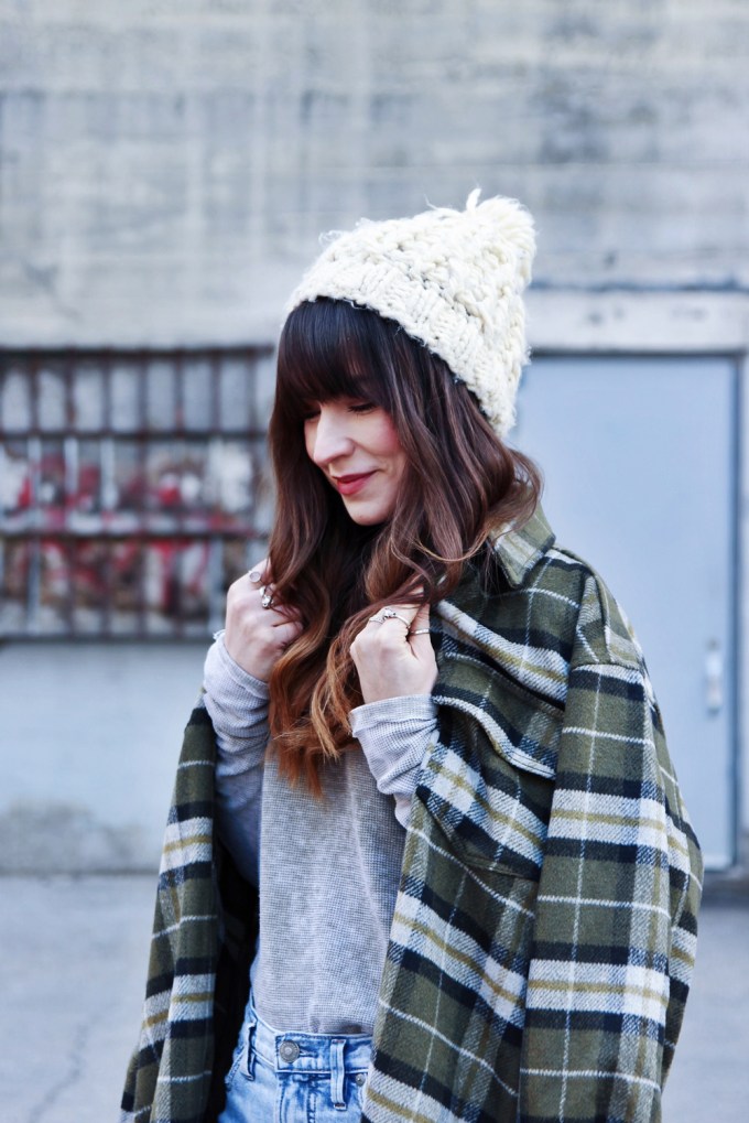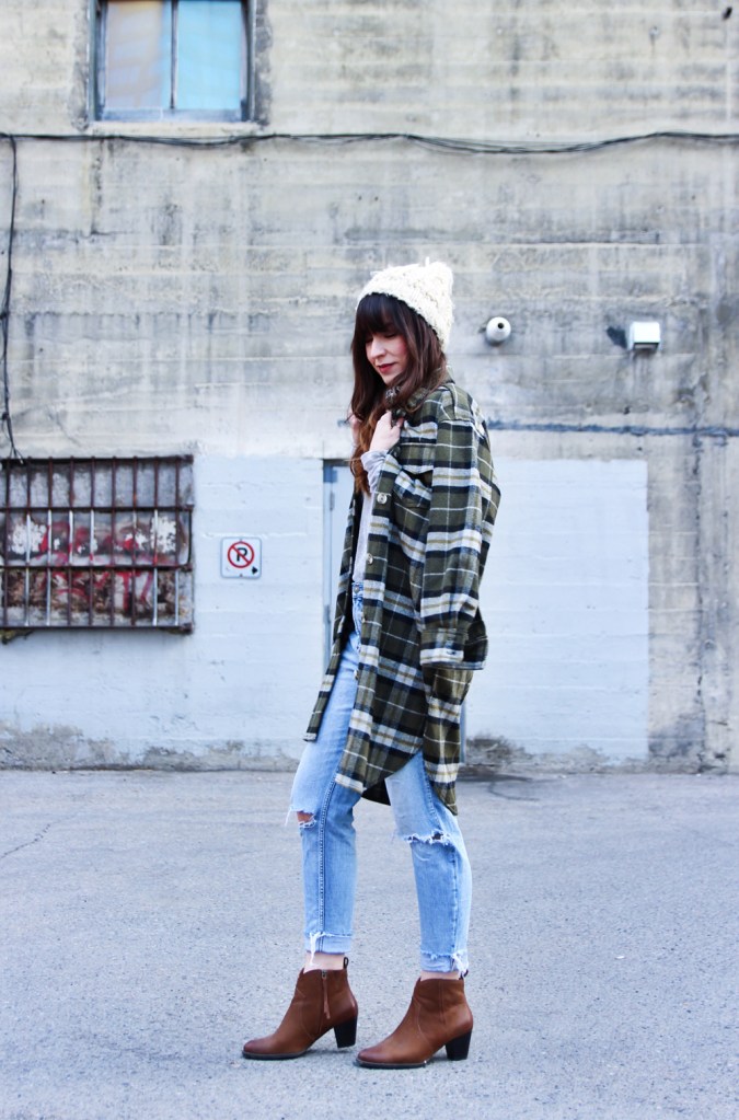 My style has always leaned to the casual side, and I think it’s even more so these days. I’ve been noticing that I tend to choose items that are oversized and comfortable, and honestly i’m ok with that. This look features all of my favourite pieces for everyday wear, including this plaid shacket from H&M. I paired it with mom jeans, and ankle boots to complete the look!