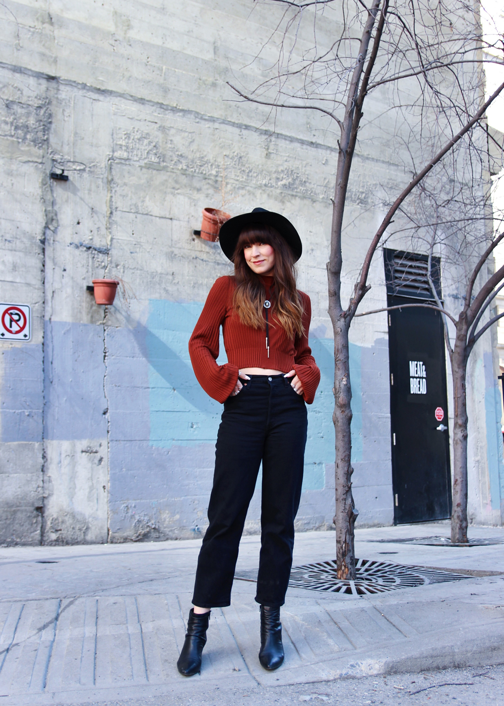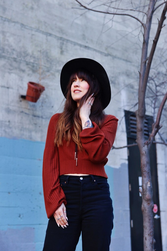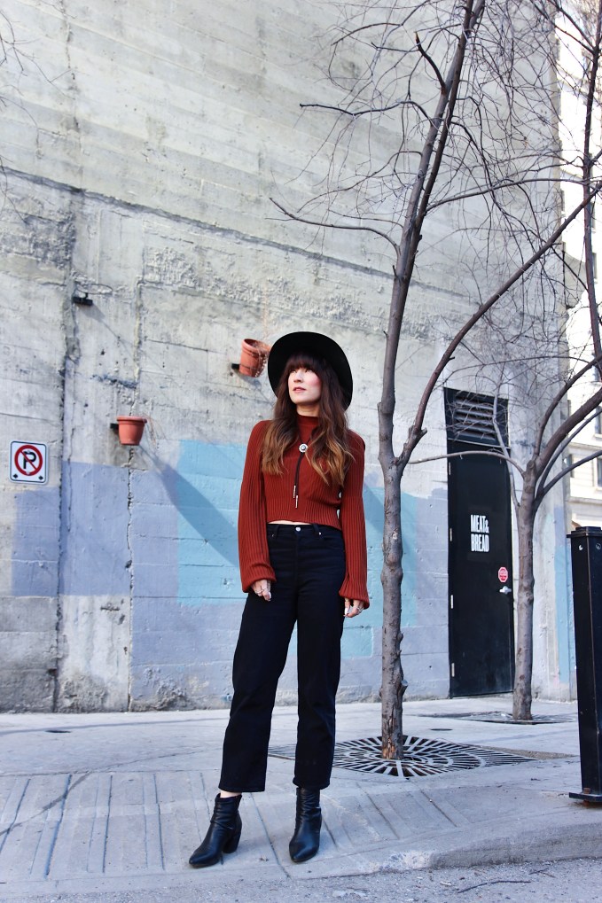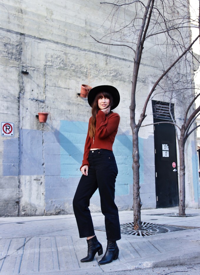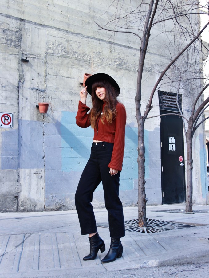 Outfit Details: Hat: Lack of Color / Boots: C/O Miz Mooz / Top: Free People / Jeans: Levi’s / Bolo: Free People