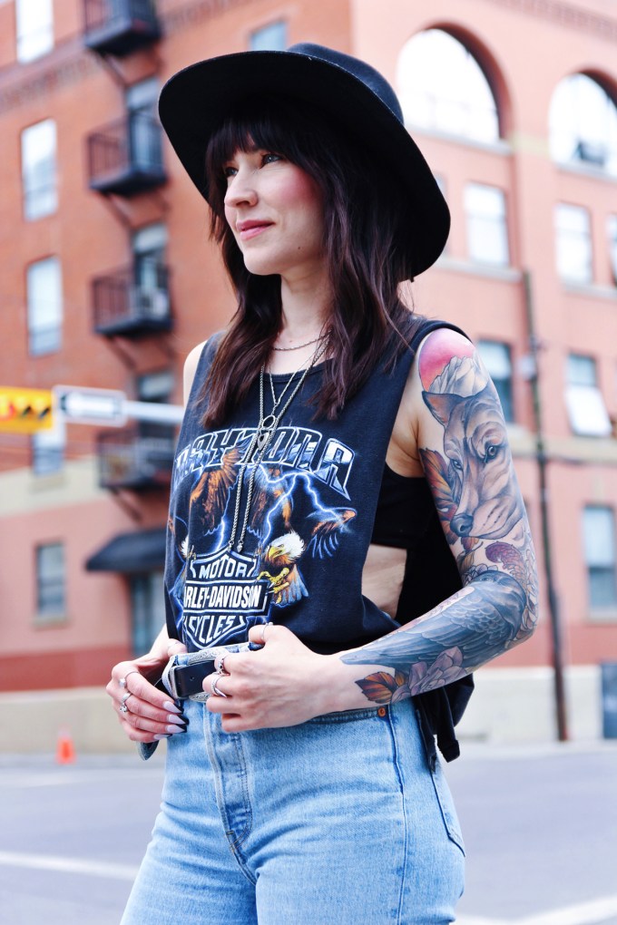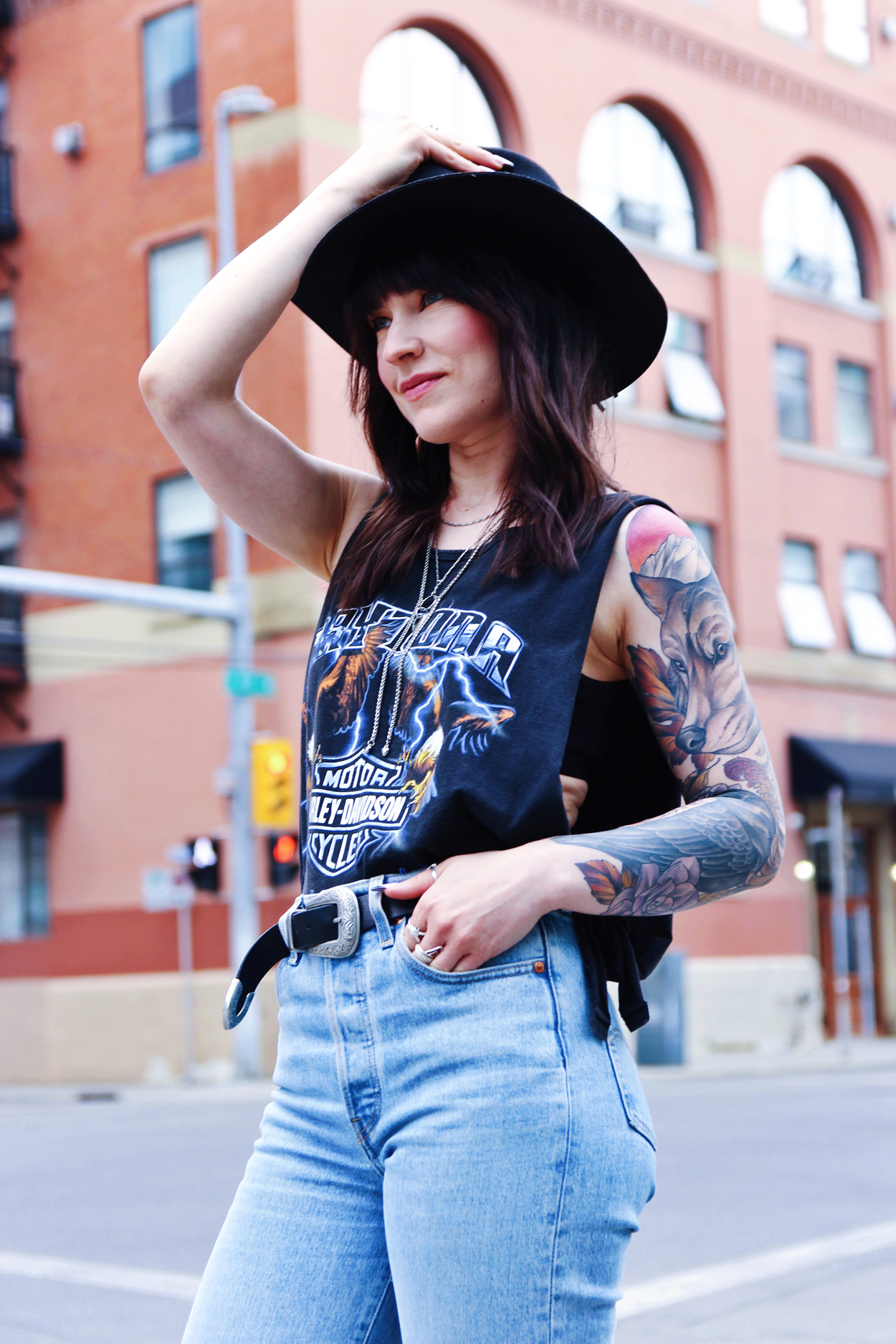 I threw together some of my favourite wardobe staples to make this look. I’ve had this vintage Harley Davidson tank for a while now, and it’s become a go-to of mine when putting together a casual summer look. You’ve probably noticed that i’ve been pretty obsessed with graphic tee’s lately, and this one is no exception. To finish the look I chose a pair of ribcage Levi’s jeans. If the weather had been warmer this day, I would have swapped them out for a pair of denim shorts.