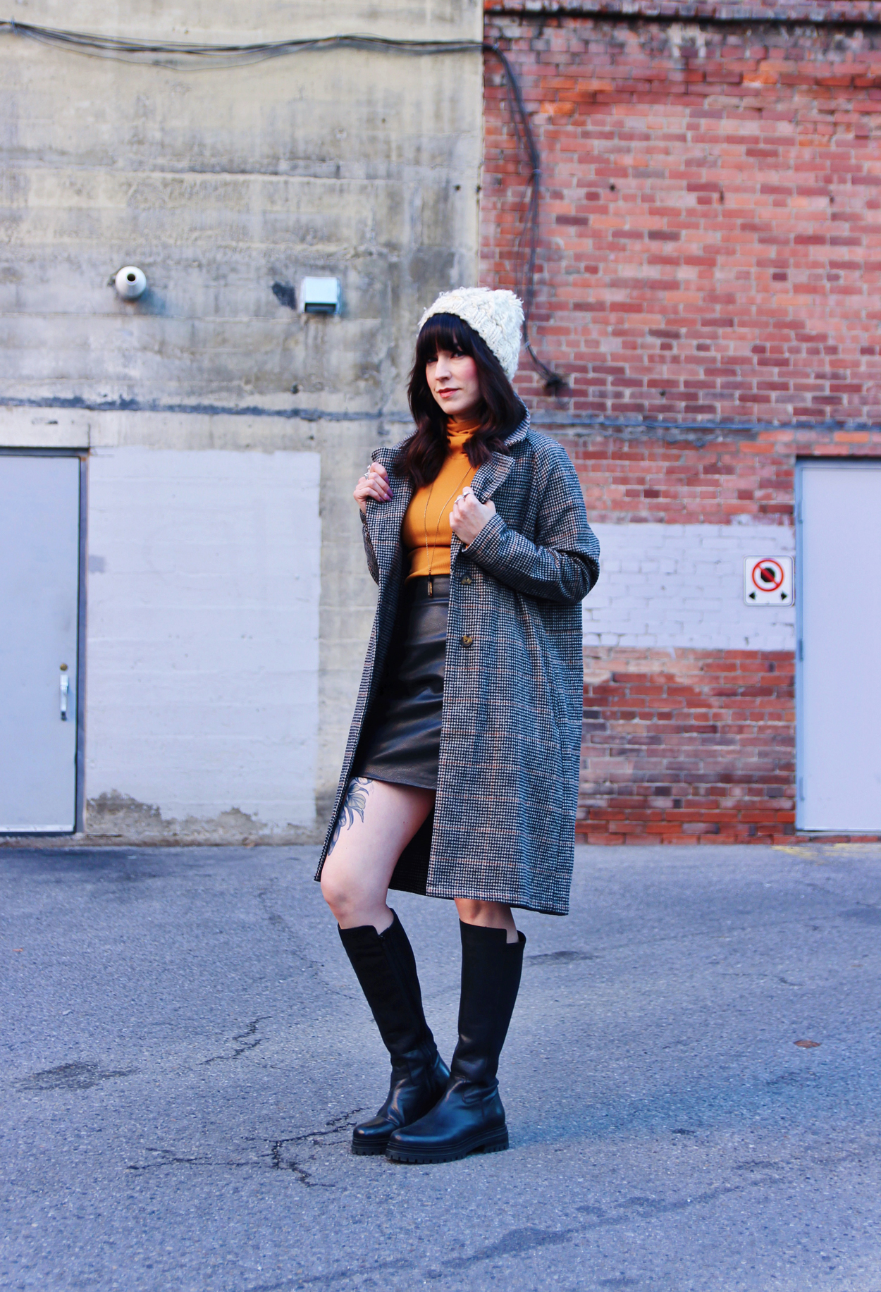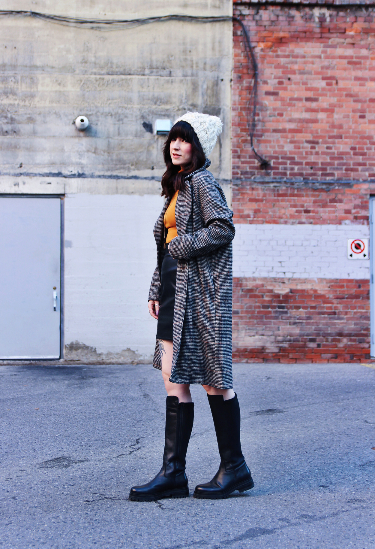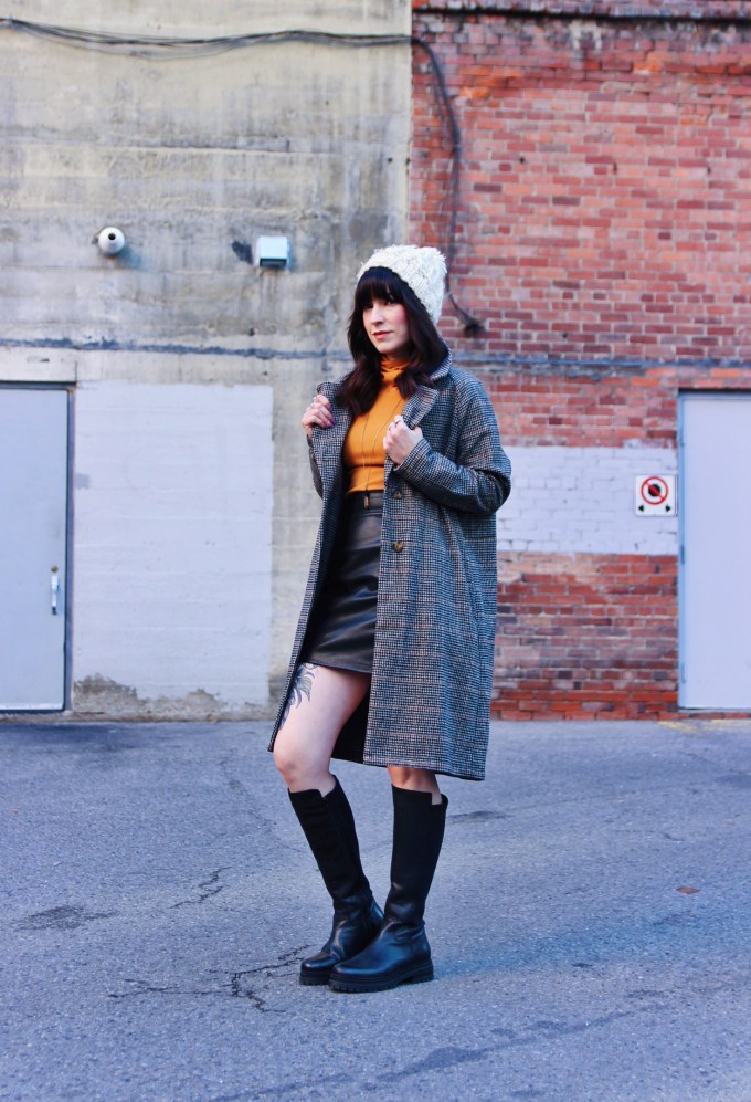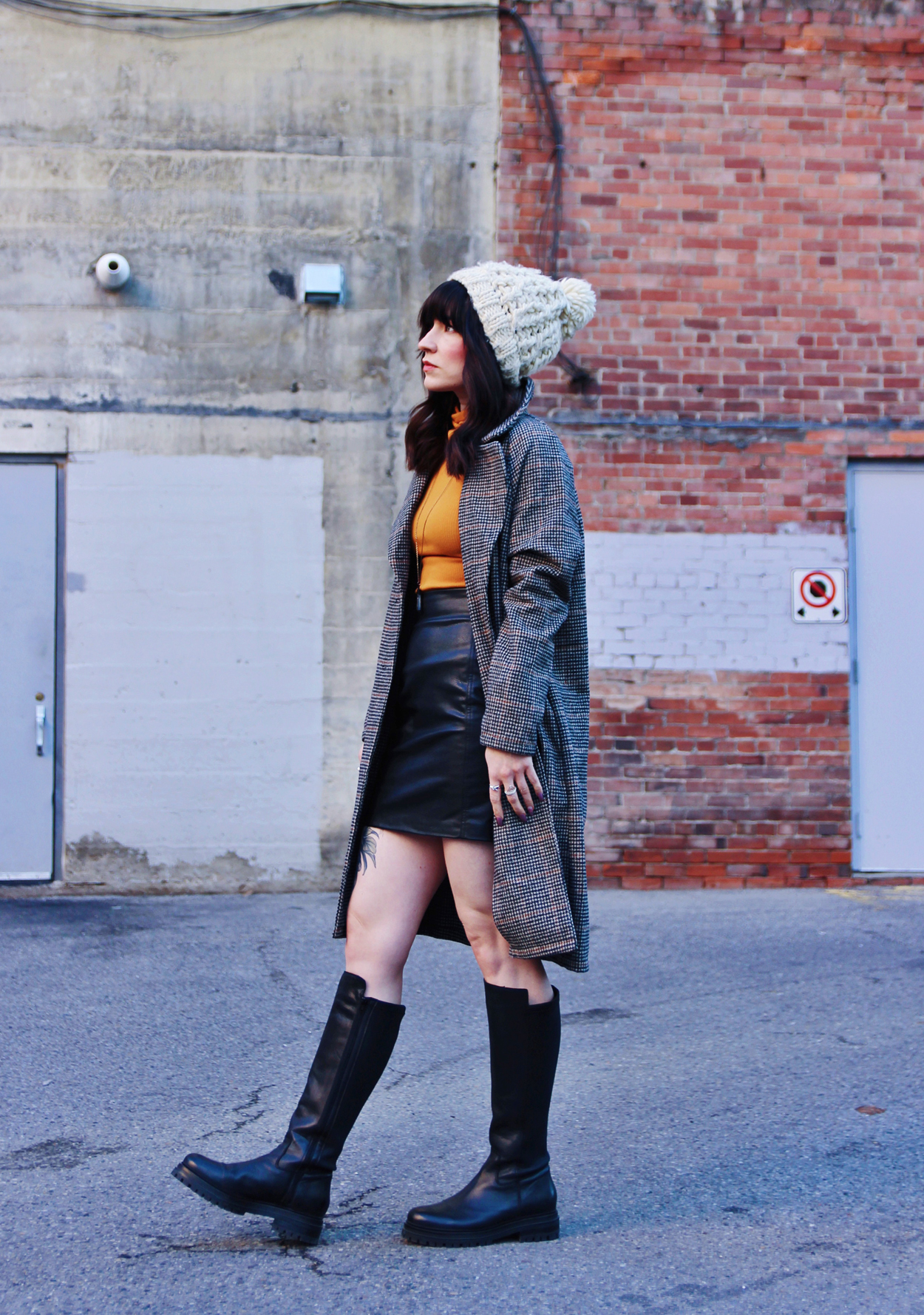 This oversized plaid coat is what autumn dreams are made of! I love having a variety of different types of plaid in my wardobe, and houndstooth was lacking, so purchasing this coat was a must! For the rest of look, I added one of my favourite skirts, and this yellow turtle neck. To accessorize, I added these tall boots from Miz Mooz, that i’m currently obsessed with, and this wool beanie.