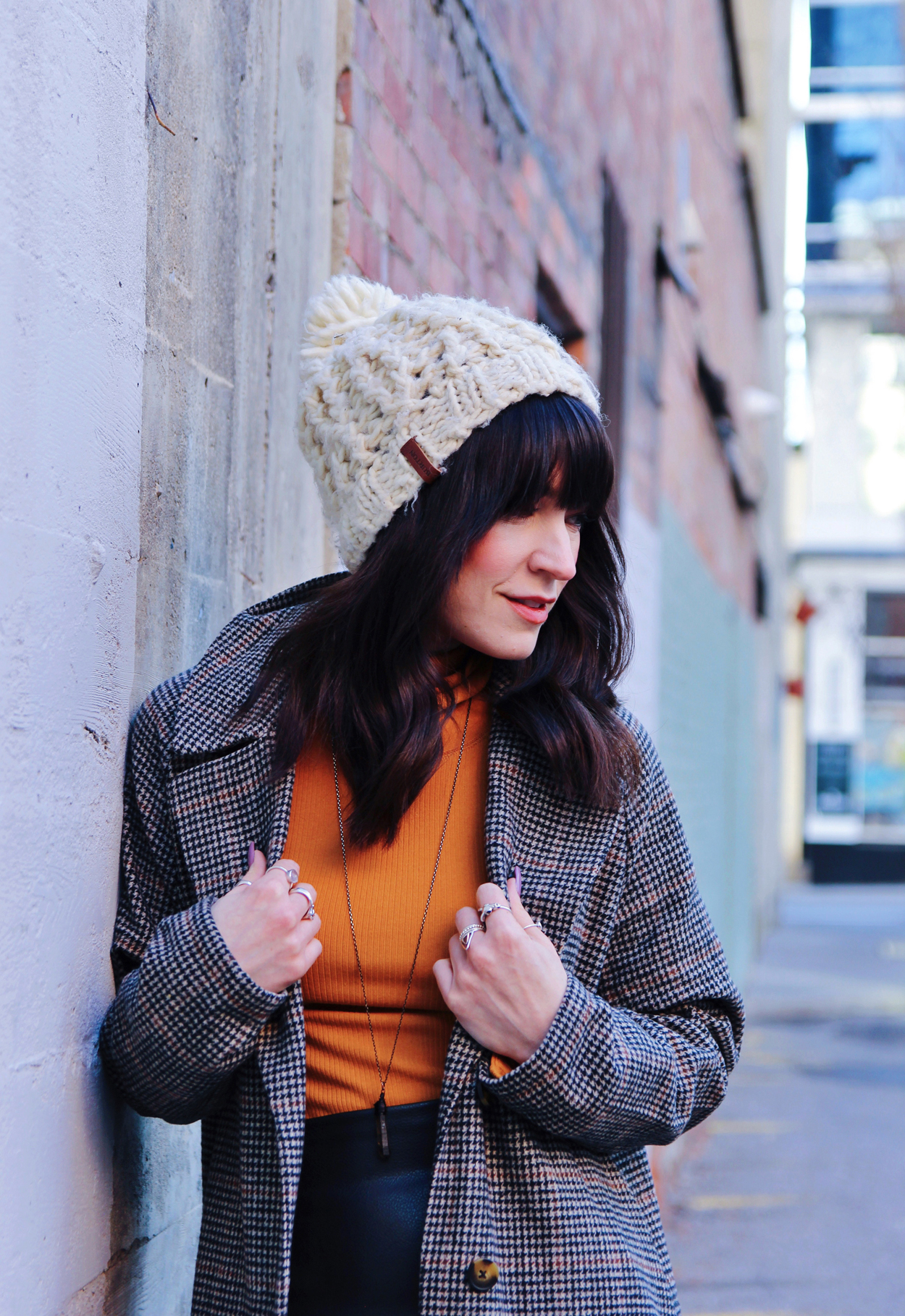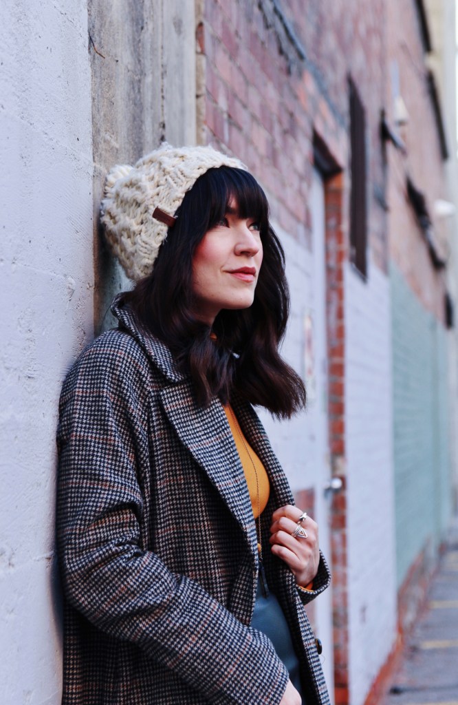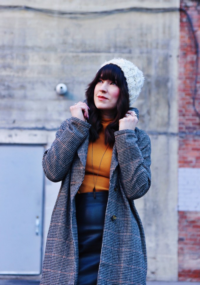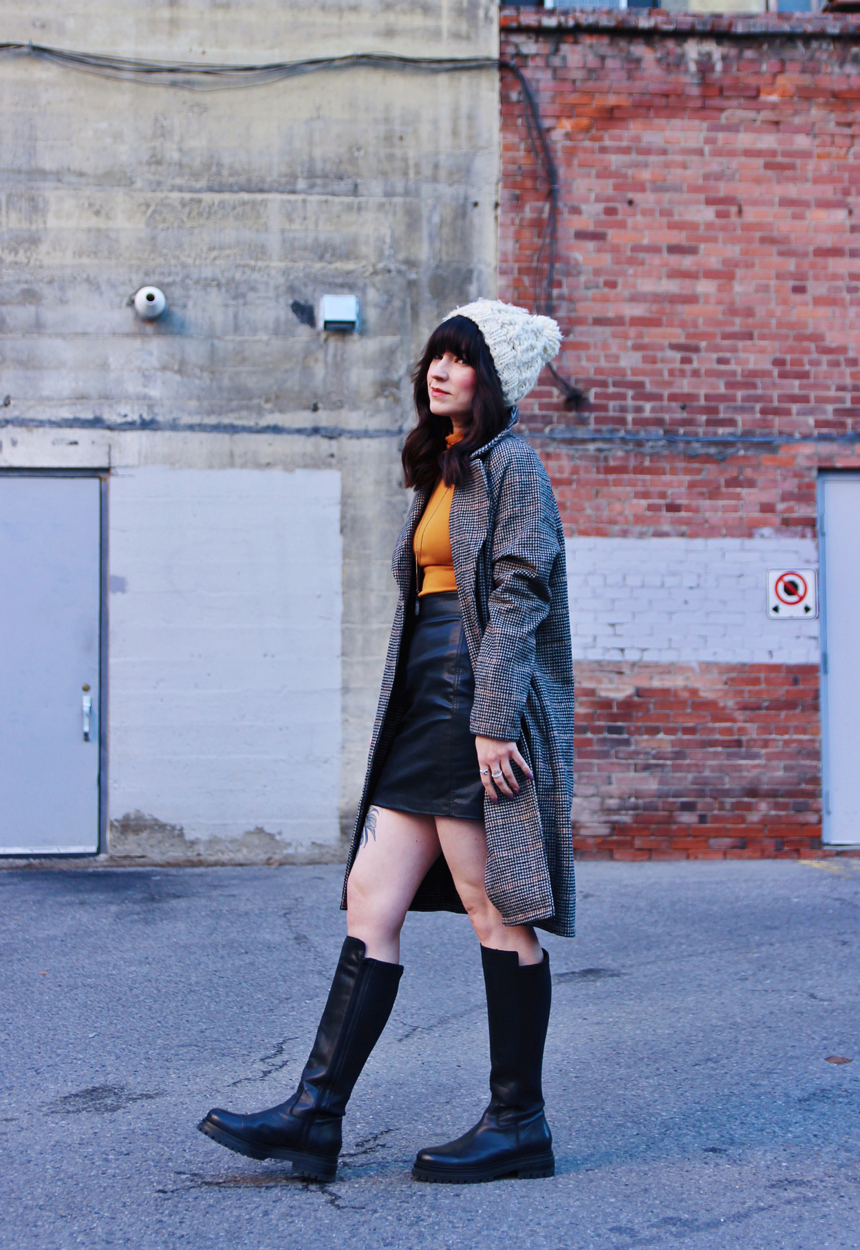 This oversized plaid coat is what autumn dreams are made of! I love having a variety of different types of plaid in my wardobe, and houndstooth was lacking, so purchasing this coat was a must! For the rest of look, I added one of my favourite skirts, and this yellow turtle neck. To accessorize, I added these tall boots from Miz Mooz, that i’m currently obsessed with, and this wool beanie.
