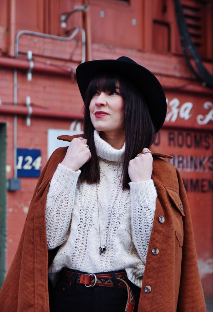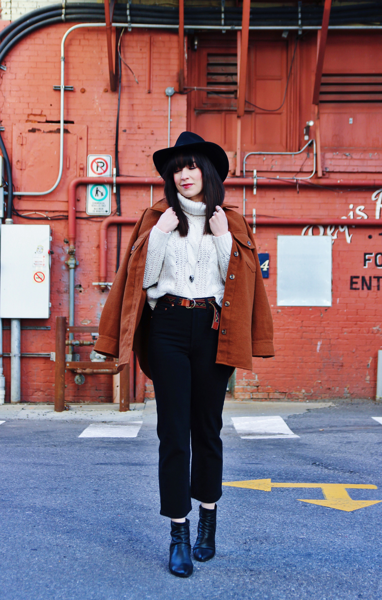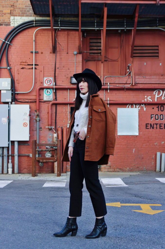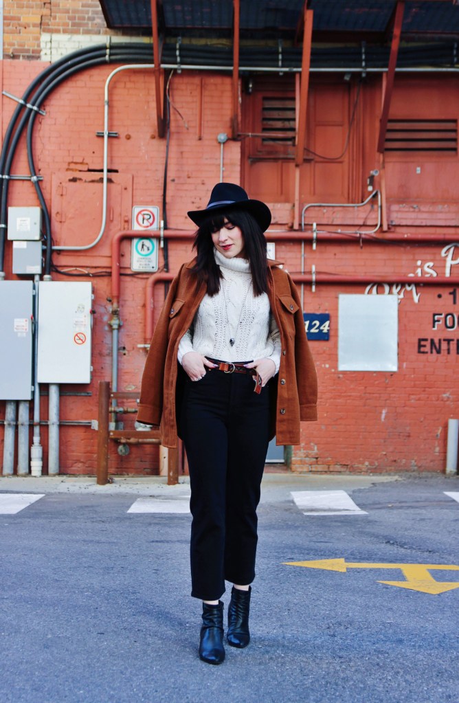 Outfit Details: Shacket: RD Style / Jeans: Levi’s / Boots: C/O Miz Mooz / Hat: Chapel hats / Necklace: C/O Moon Raven Designs