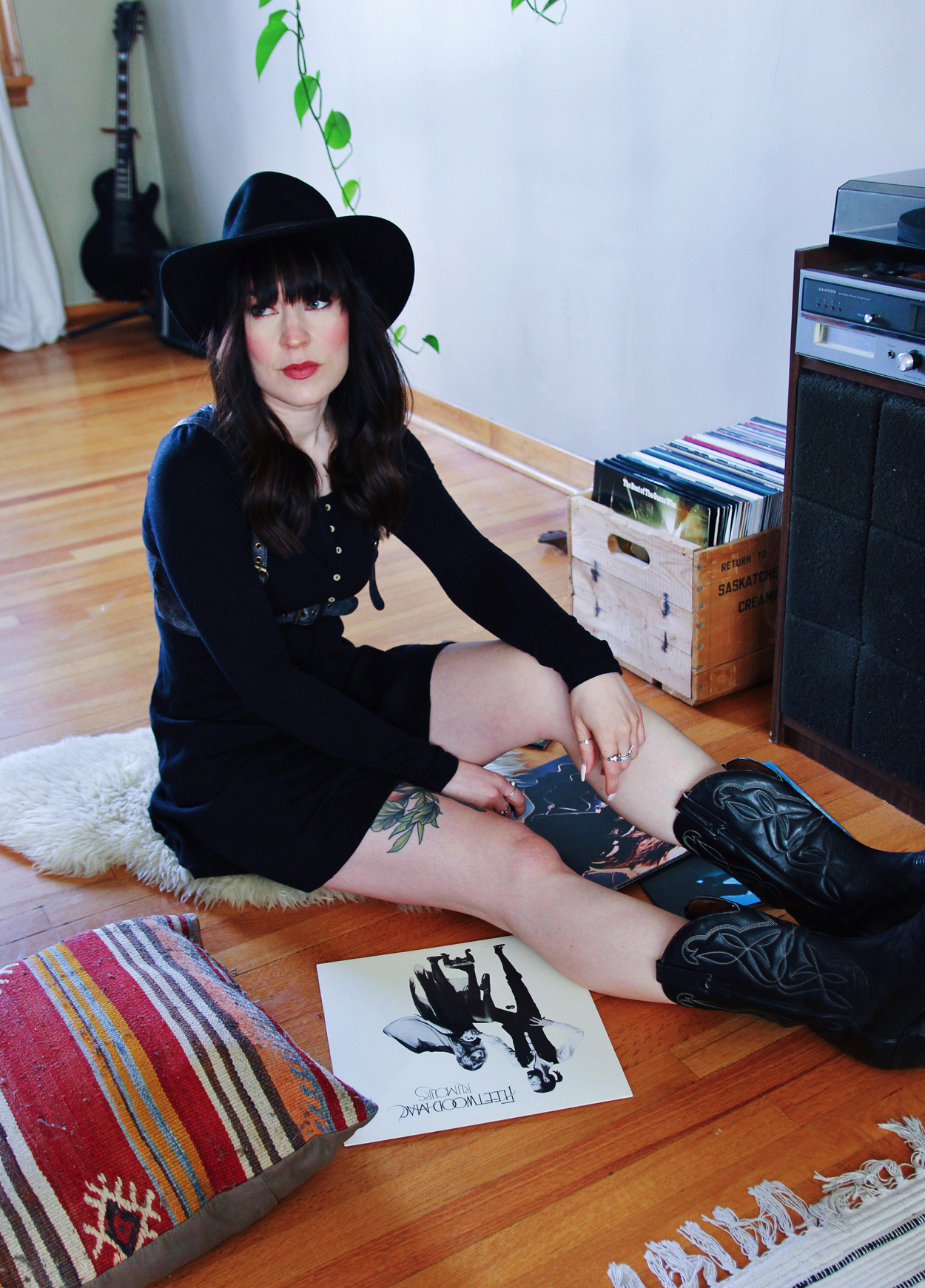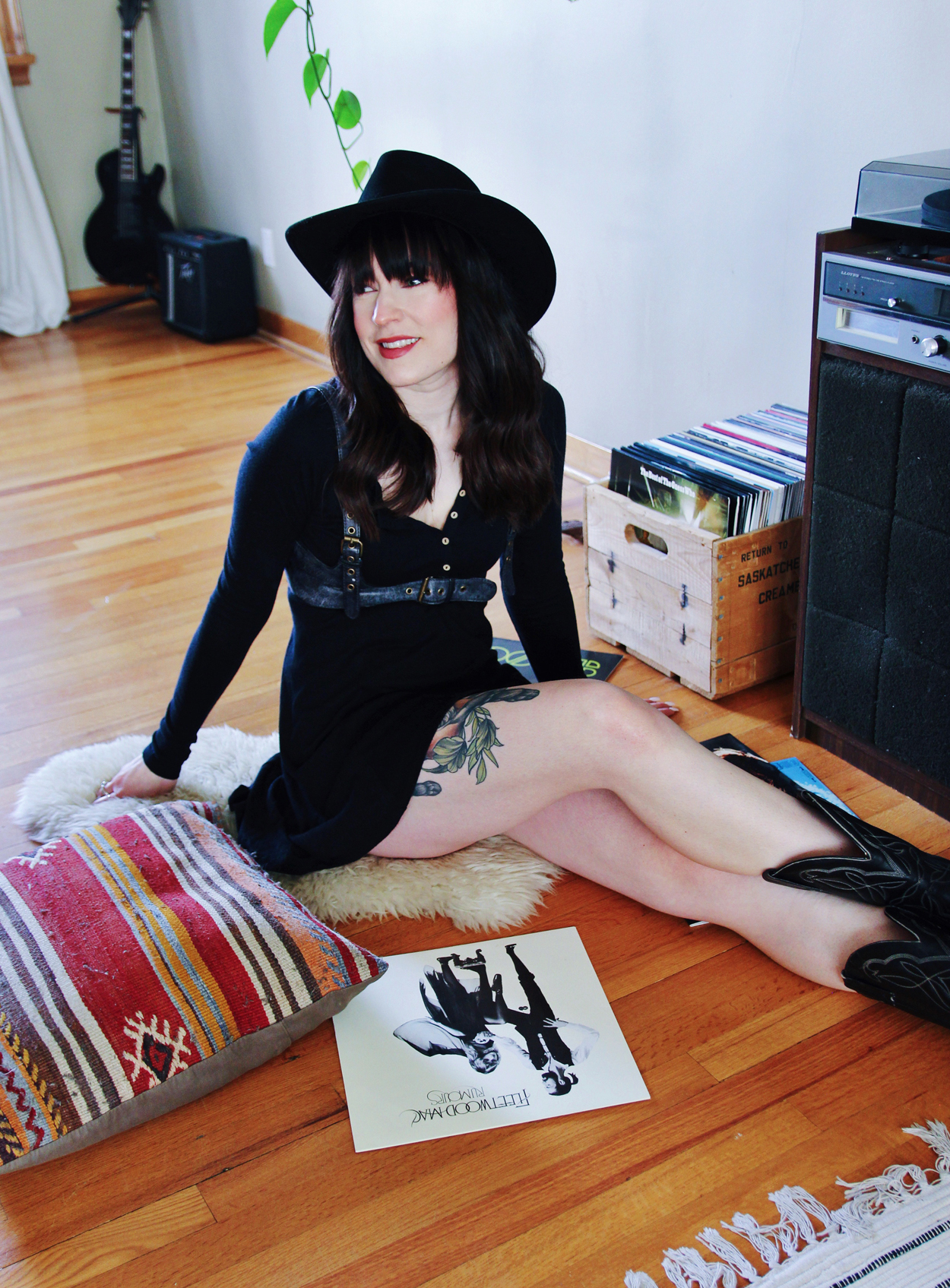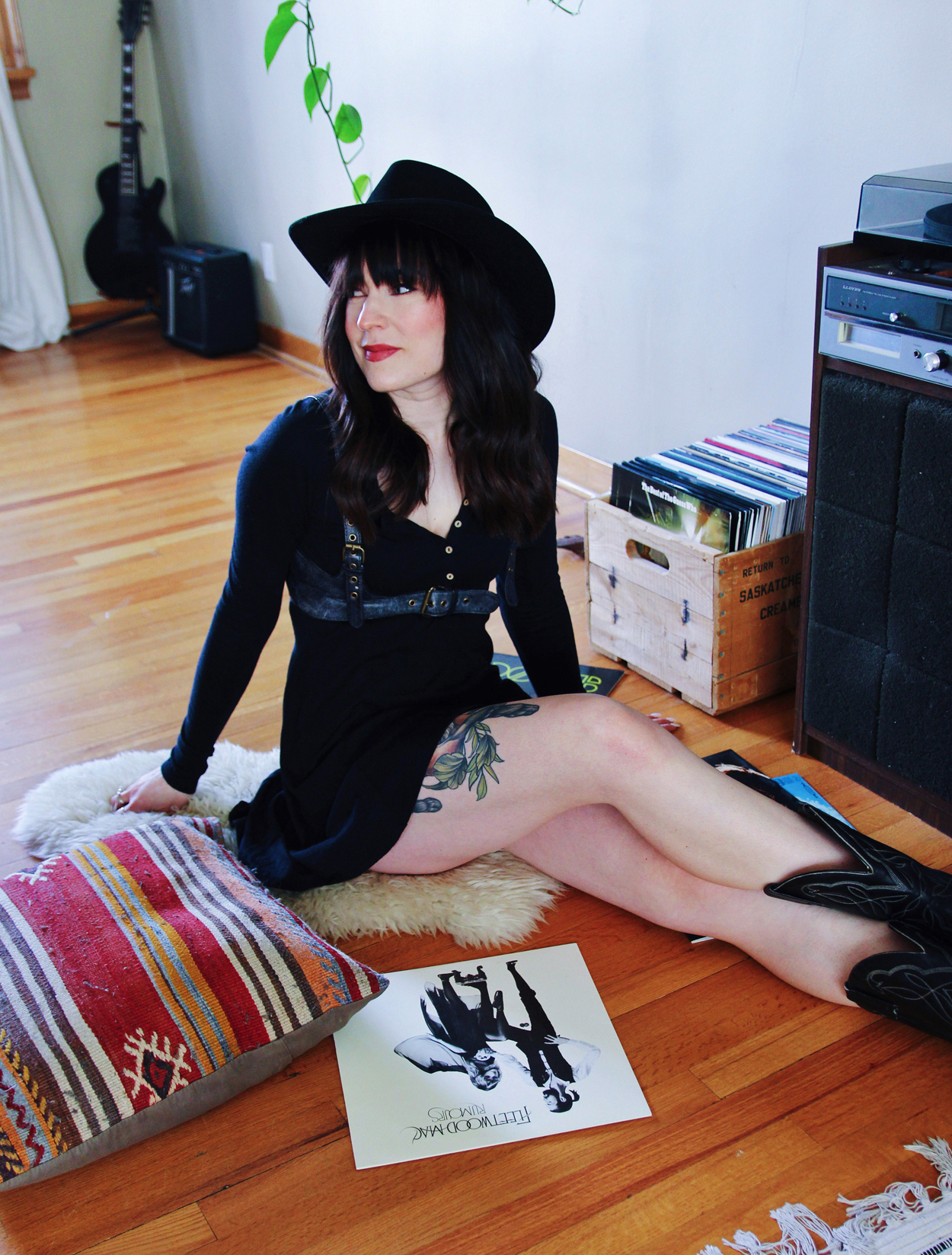 Outfit Details: Dress: Free People / Harness: Free People / Boots: Thrifted / Hat: Chapel