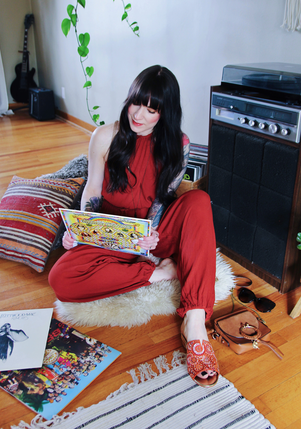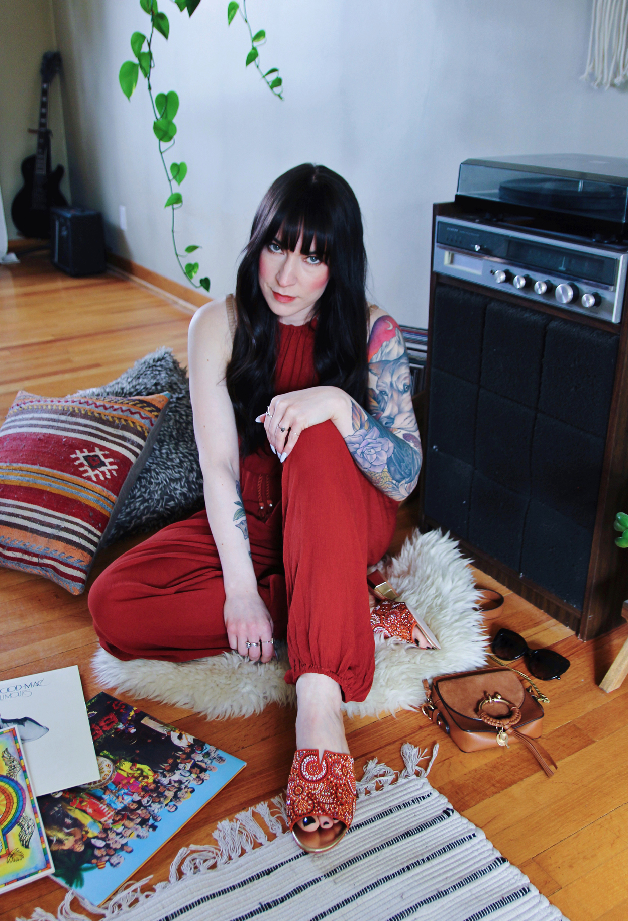 Outfit Details: Jumpsuit: Anthropologie (old) / Shoes: C/O Django & Juliette / Bag: See By Chloe
