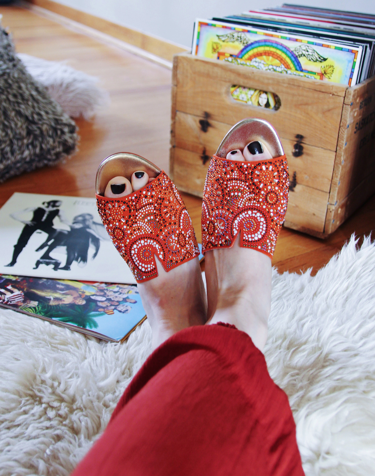 Even though the weather can be very unpredictable this time of year, it’s starting to feel a little more like spring in Calgary! For that reason i’ve been trying to wear more colour, and lighter pieces, including this jumpsuit. I also love adding statement pieces to all of my looks, and these slides by Django & Juliette are exactly that! I love the colour, and the beadwork is absolutely beautiful!
