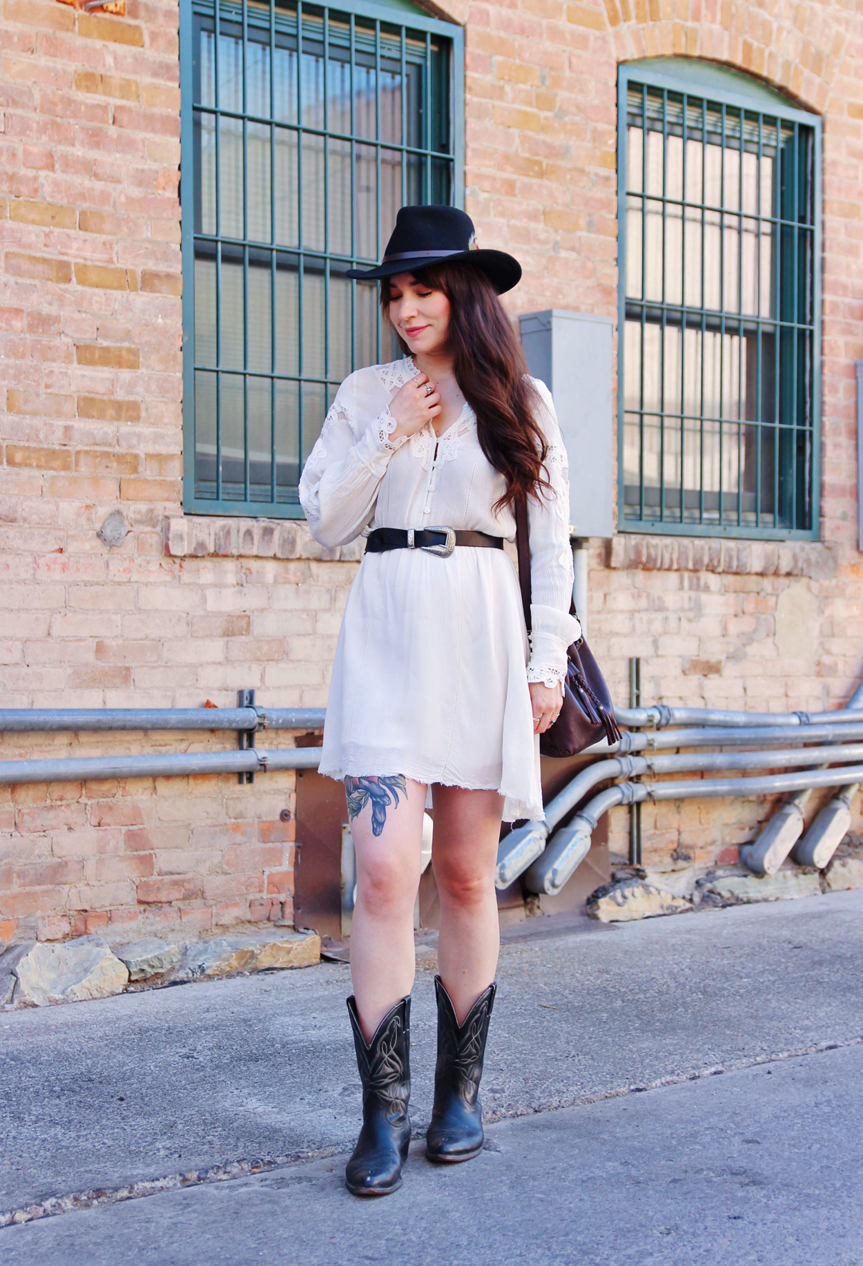 You can’t go wrong with a white dress, especially in the summer… unless you’re attending a wedding that is. Dresses make for an easy outfit, and you can add any number of accessories to change up your look. They’re are a few different ways I could have styled this dress, but I chose my current favorite, and that is cowboy boots, and a hat. I’m really obsessed with these boots at the moment, and I think I need to invest in another pair, so watch out for that!