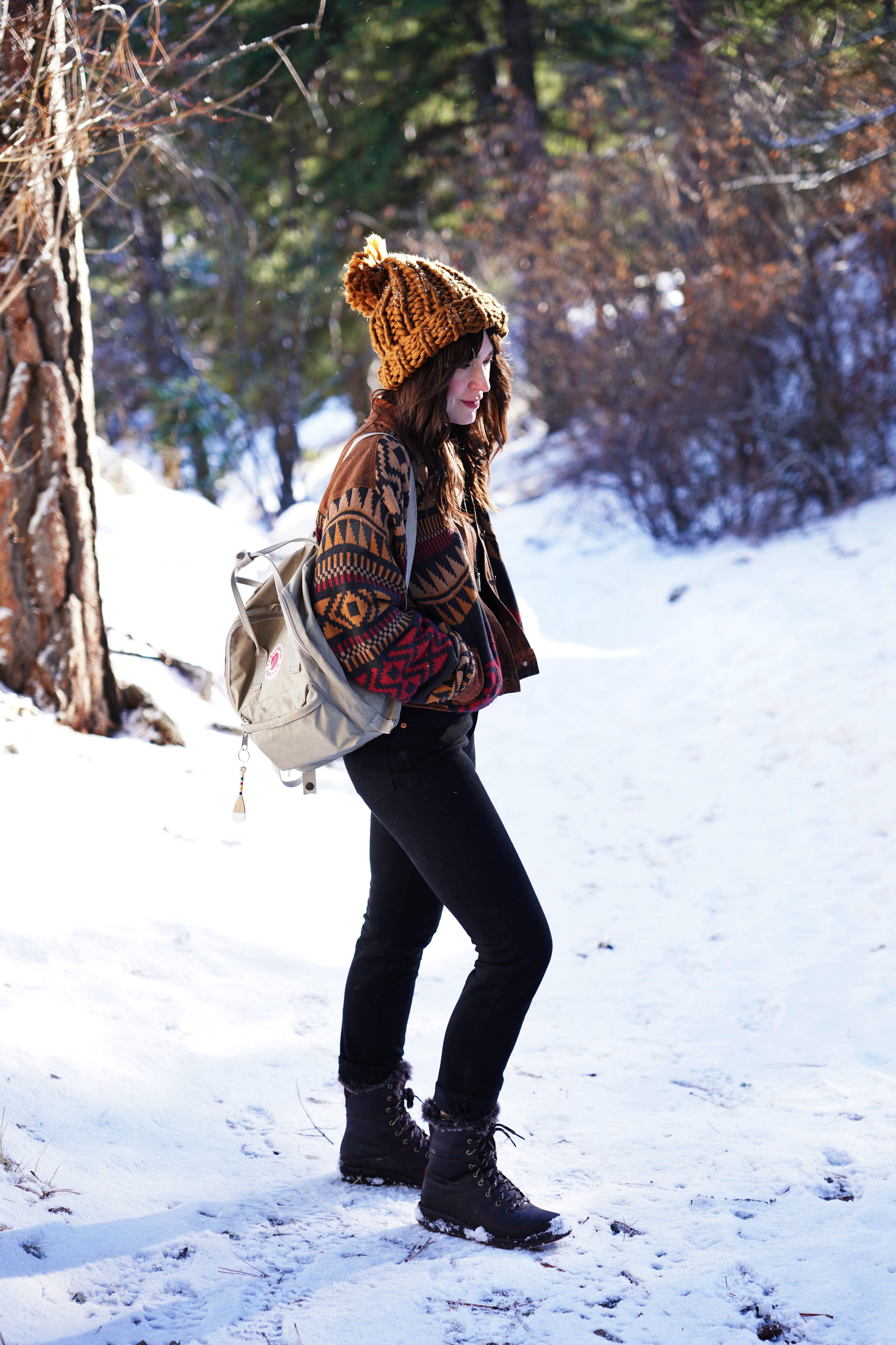 Outfit Details: Jacket: Free People (old) / Bag: Fjallraven / Boots: C/O Merell / Jeans: Levi’s / Hat: Urban Outfitters