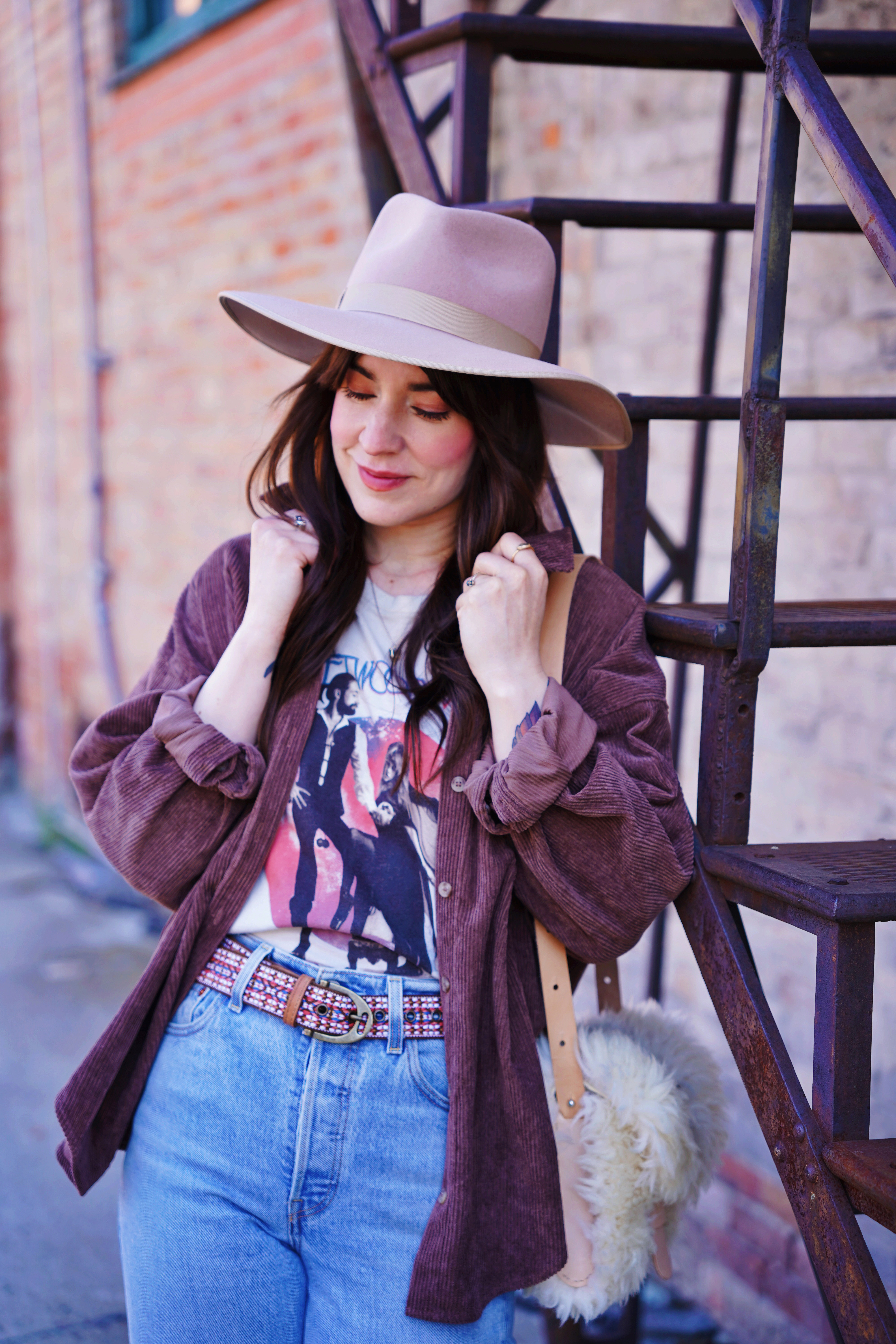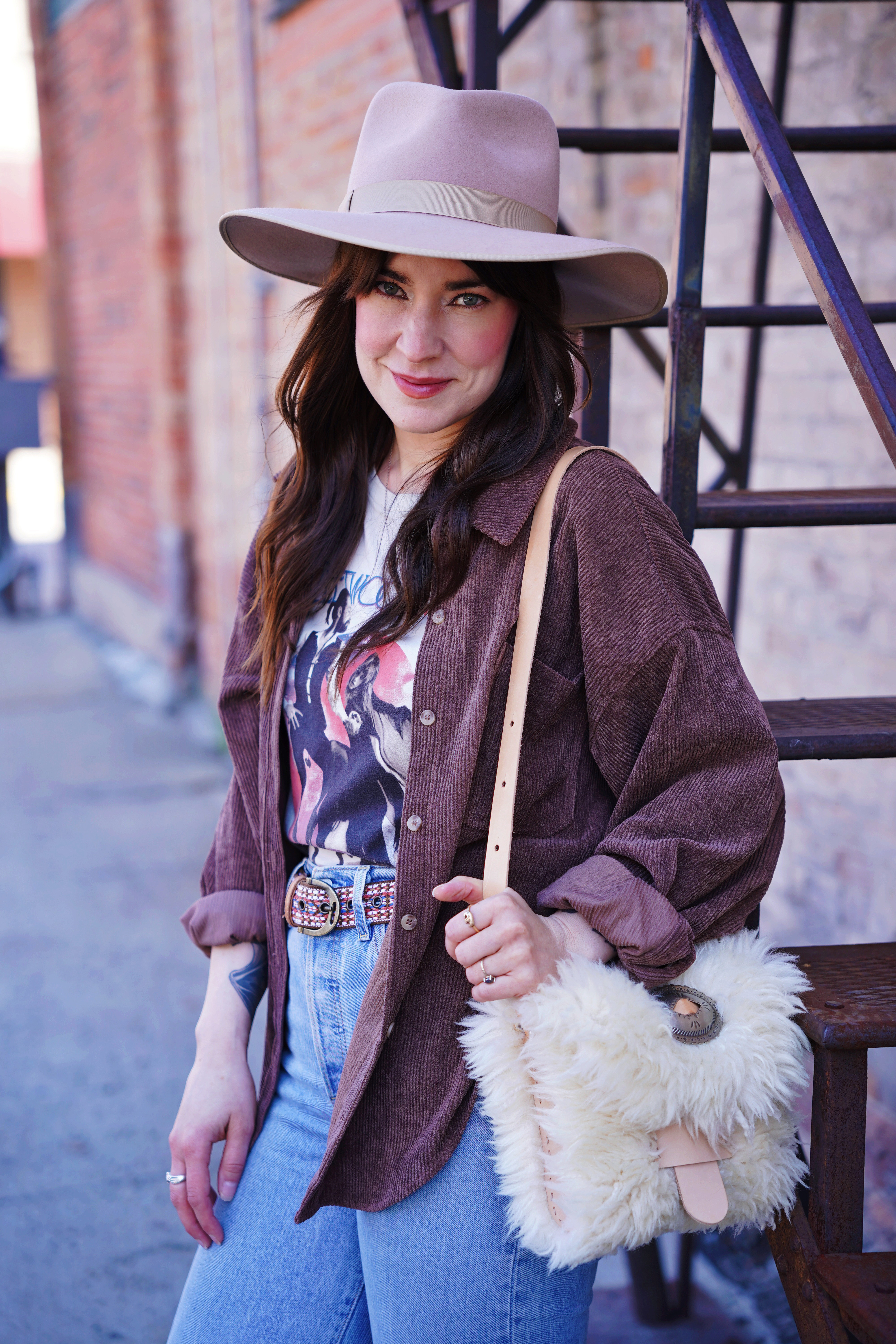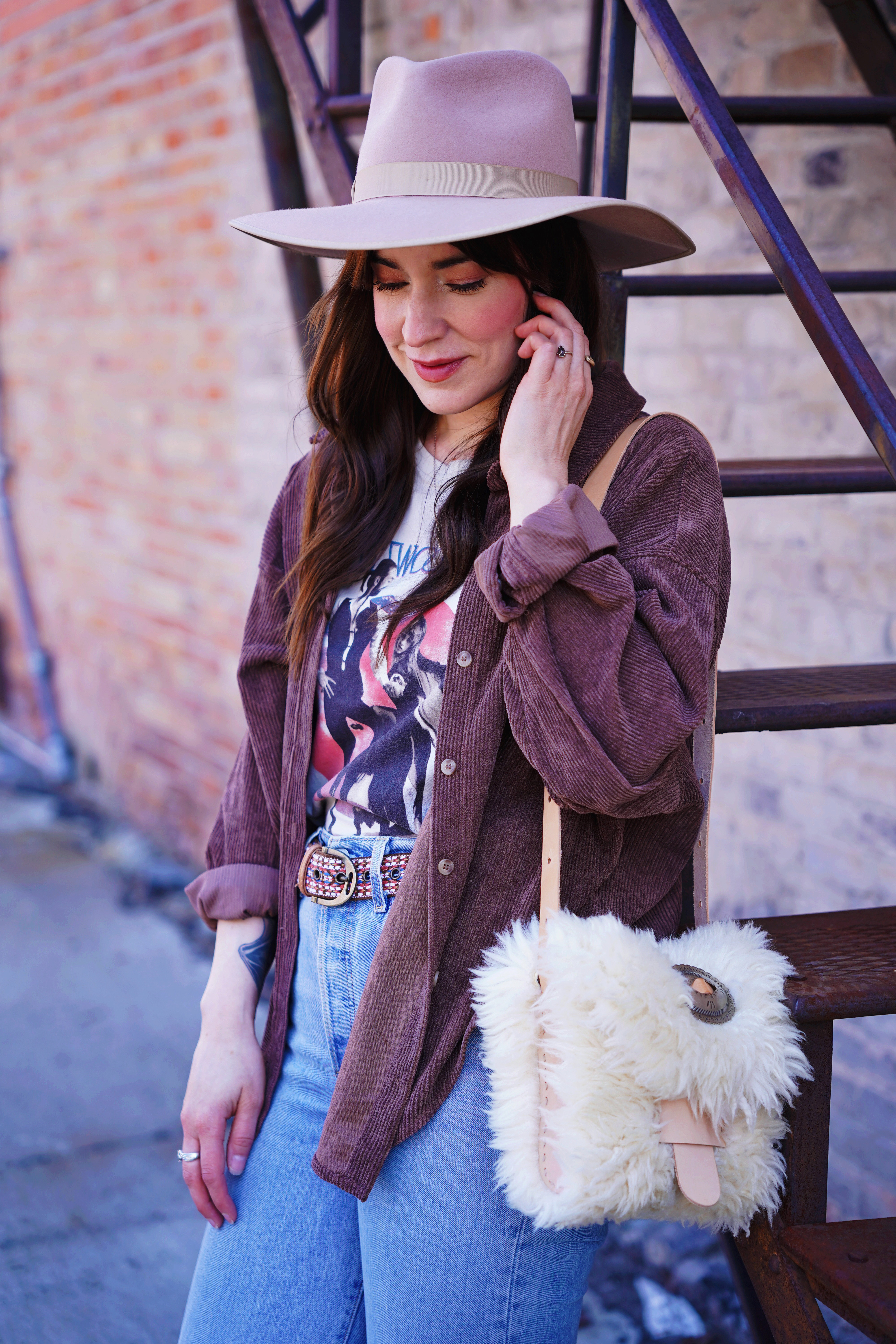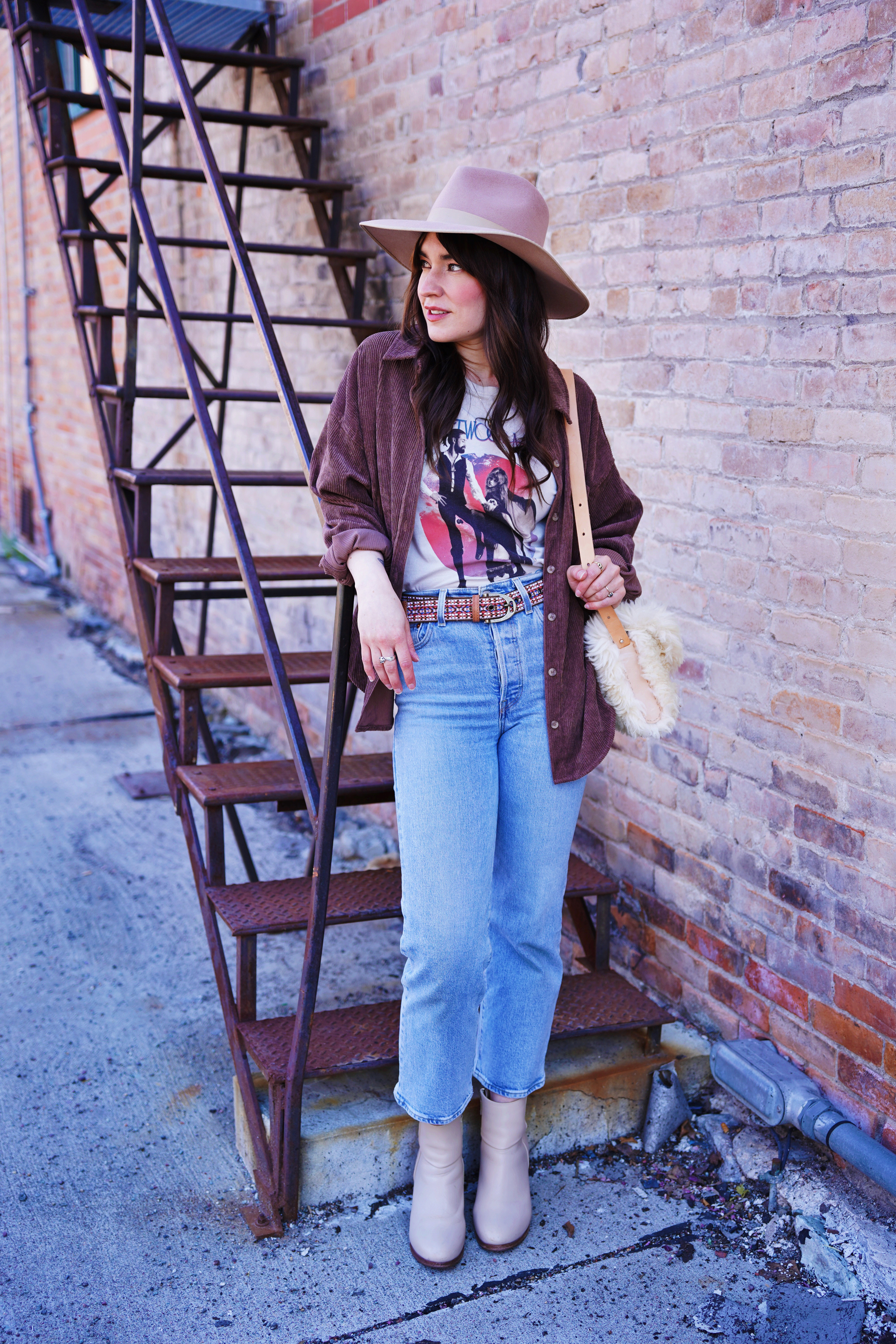 Outfit Details: Jeans: levi’s / Bag IDA + Moon / Tee: Fleetwood Mac / Boots: C/O Thursdays / Hat: Lack of Color /
