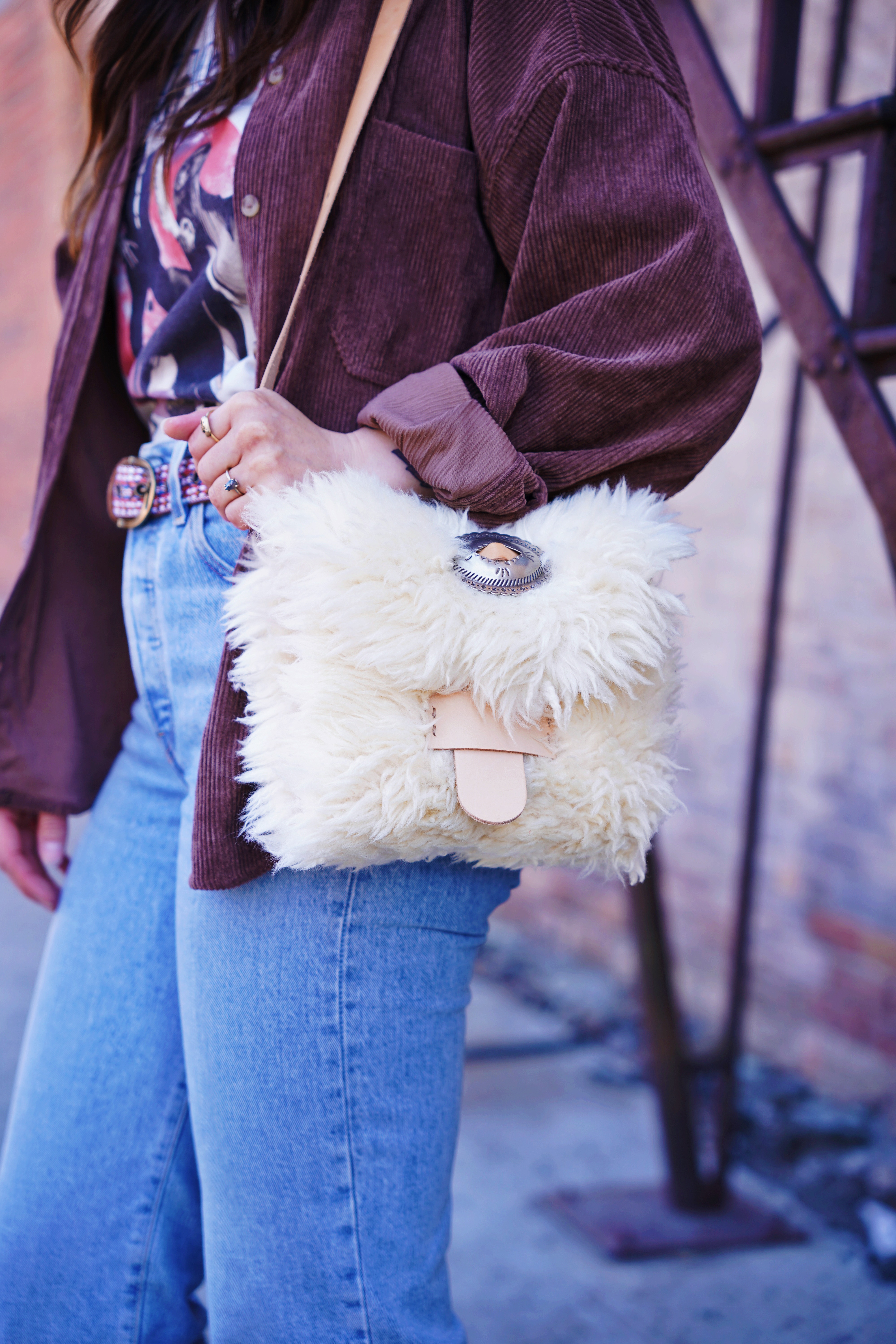 This outfit consists of a few of my old favorites from the past few years. While I love adding new items to my wardrobe, I can’t forget about the staples that make it what it is. The Levi’s ribcage style has been a favorite of mine for a while now, and I still wear them all the time. I love the high-rise fit, and the straight cut of the legs. The new additions to this look are this shearling bag from IDA + Moon, and this belt from Free People. I love how accessories can instantly elevate any look!