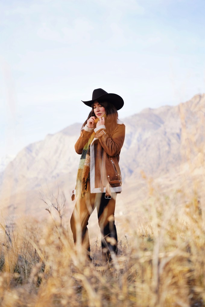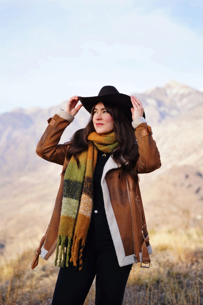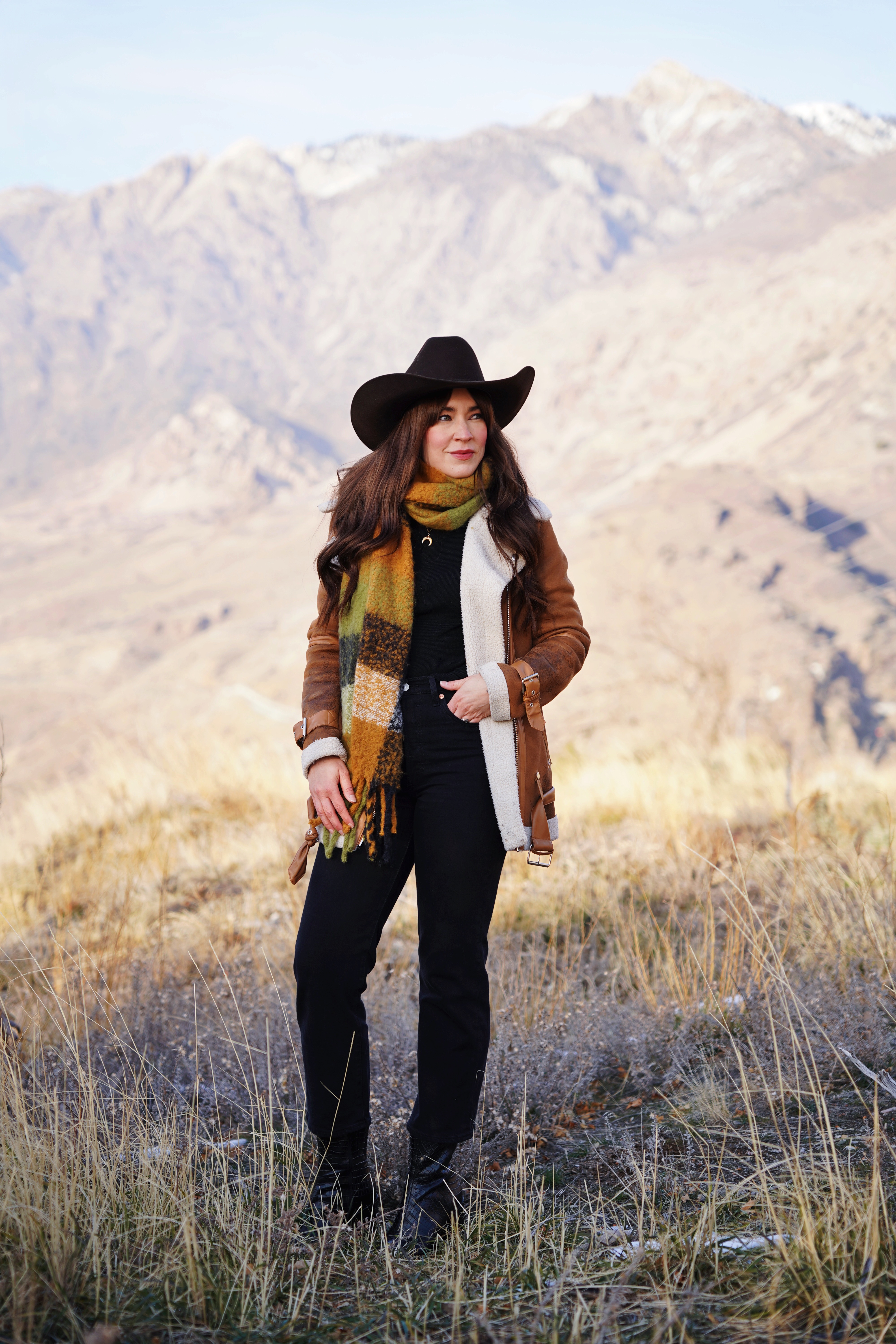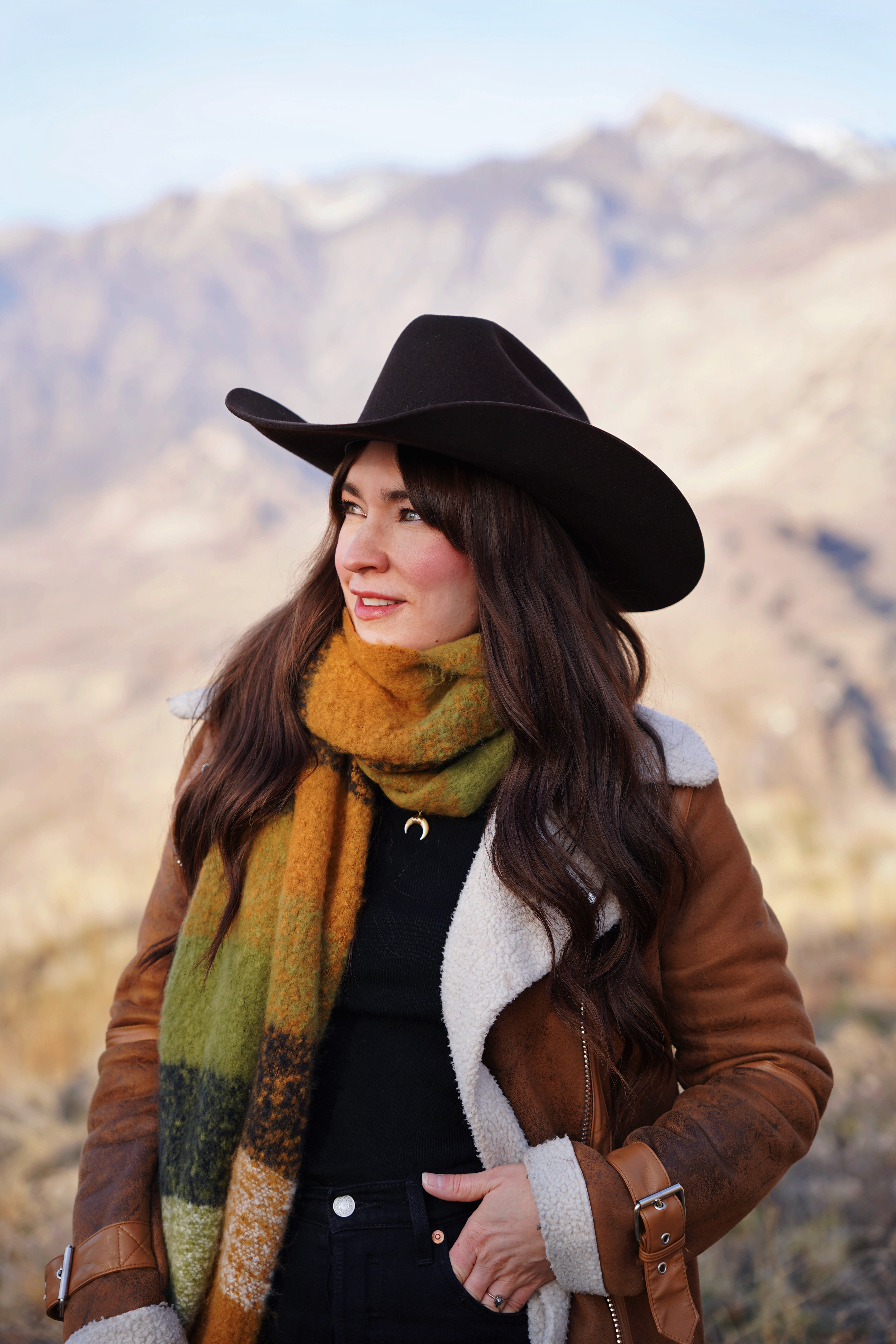 Because I’ve always lived in places with cold winters, i’ve amassed a fairly good sized collection of coats. This coat in particular as been a favorite of mine for some time now. It’s definitely a staple piece in my winter wardrobe! I kept the rest of the outfit basic with black jeans and a black top. For accessories, I added this fuzzy scarf, and one of my favorite cowboy hats. I love updating my regular outfits with new accessories. It’s an easy way to make an outfit feel new and fresh without replacing everything.