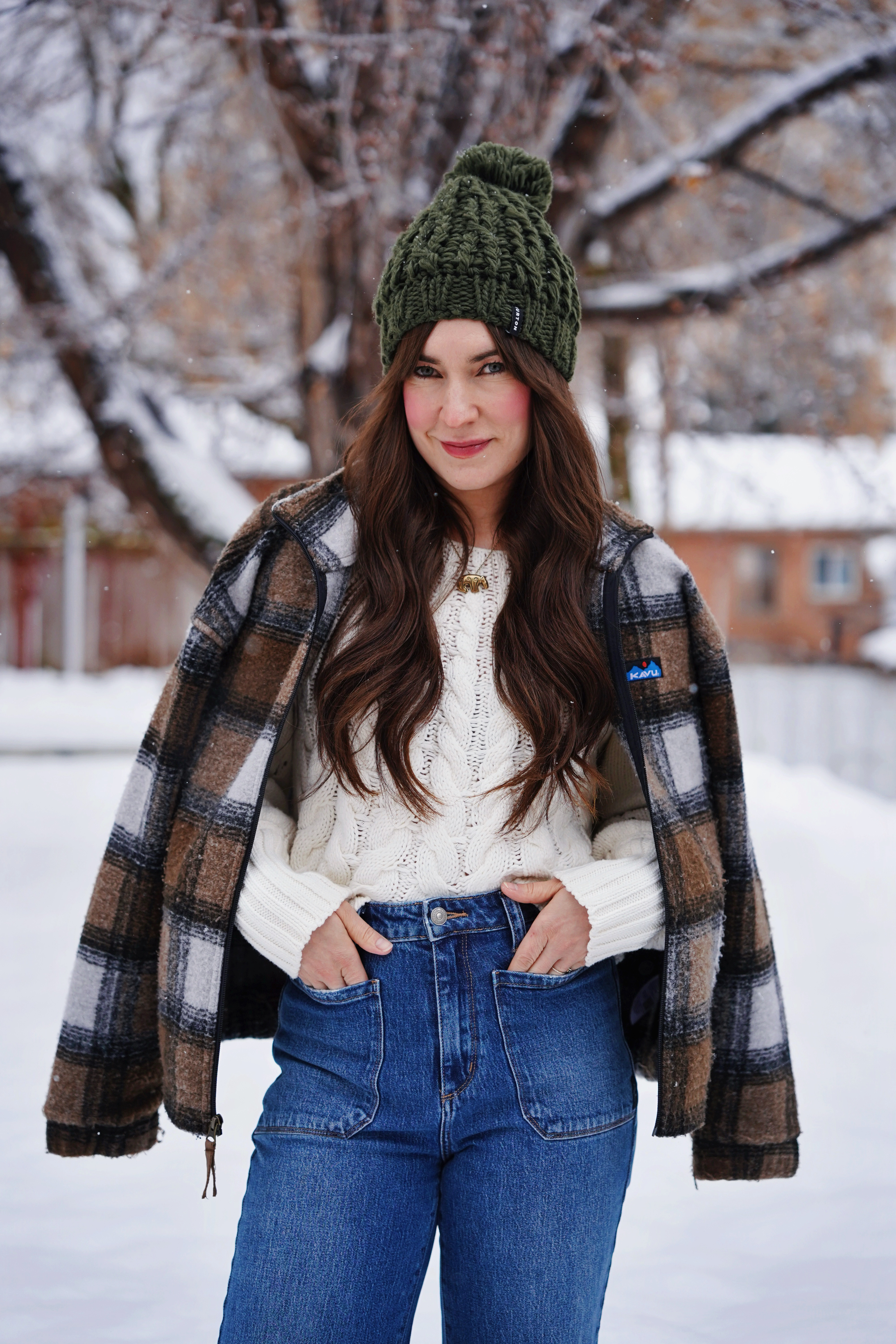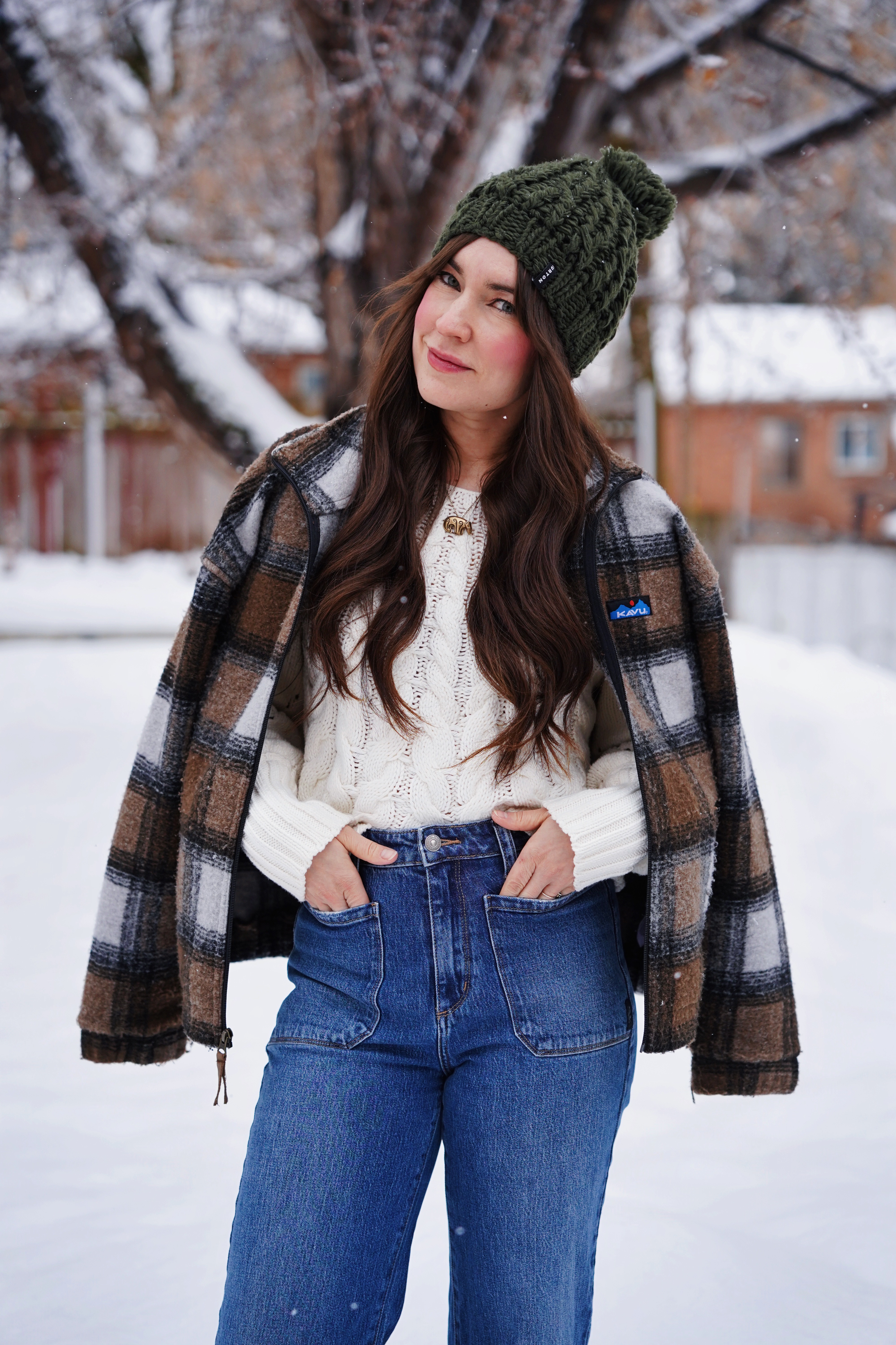 It snowed a lot in the past few days here in Ogden. It’s great for the ski hills, not as good for driving conditions. Either way, it’s very beautiful, and definitely to be expected this time of year. This outfit is casual and cozy for the winter weather. I like to basically live in denim this time of year, and these jeans from Silver Jeans Co are one of my favorite pairs. I’m also pretty obsessed with this plaid coat from Kavu at the moment!