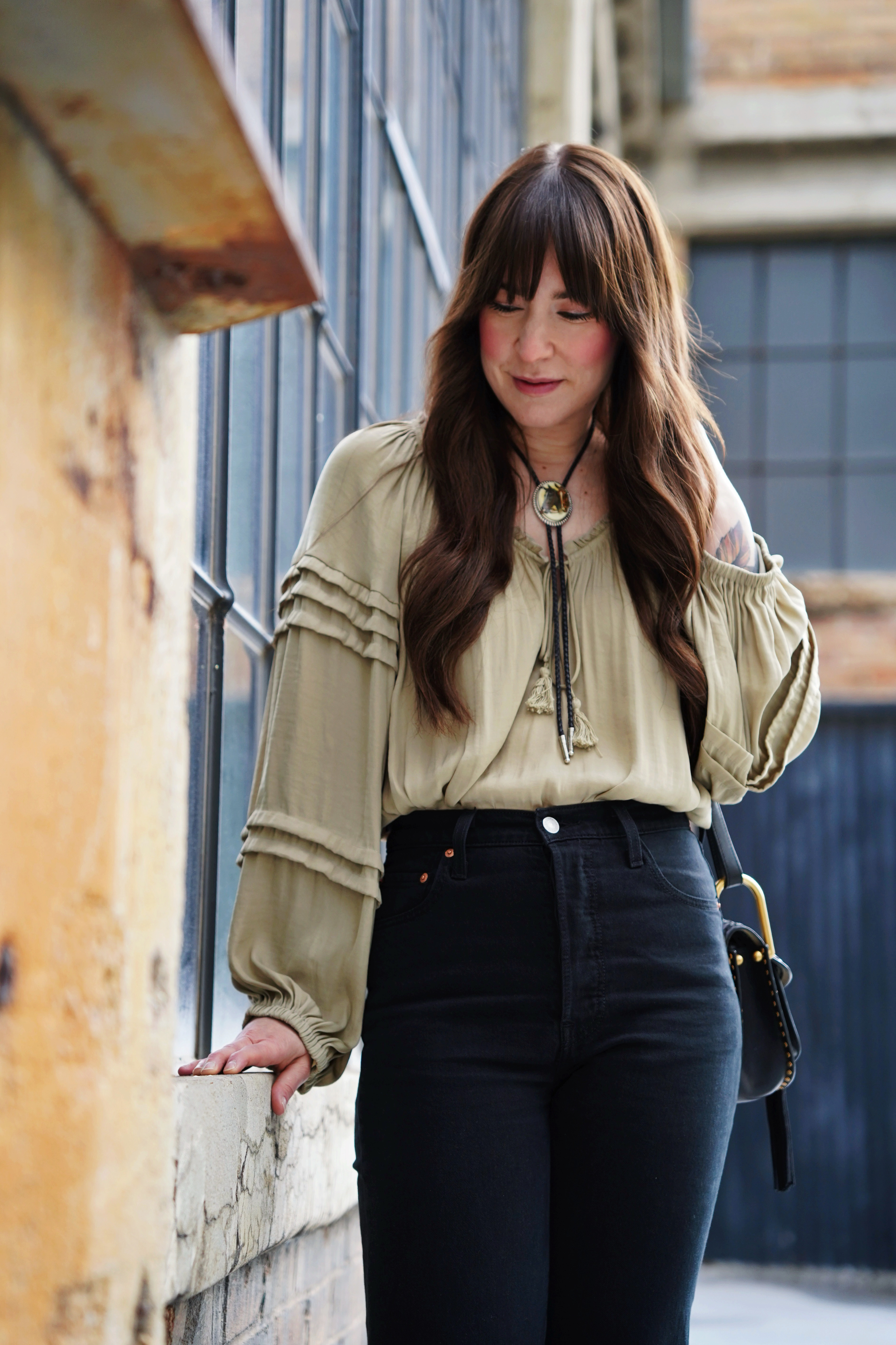 It was a little rainy in Ogden this past weekend, so styling pants over shorts was a no brainer. For this look I chose my favorite pair of Levi’s ribcage jeans, and a Free People body suit. I like wearing loose floaty tops, especially in the spring and summer months. To accessorize I chose one of my favorite bolo ties, and a Chloe bag.