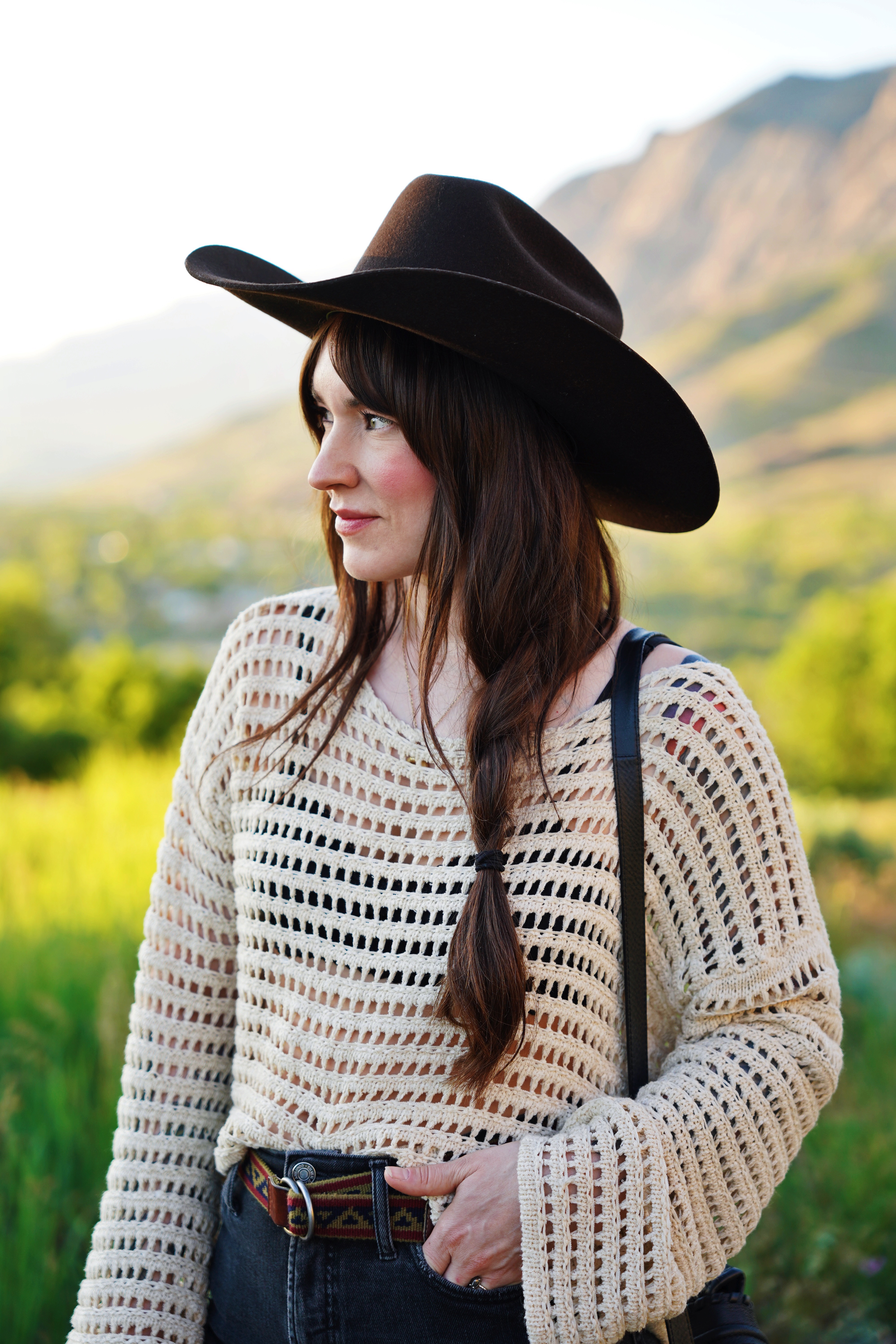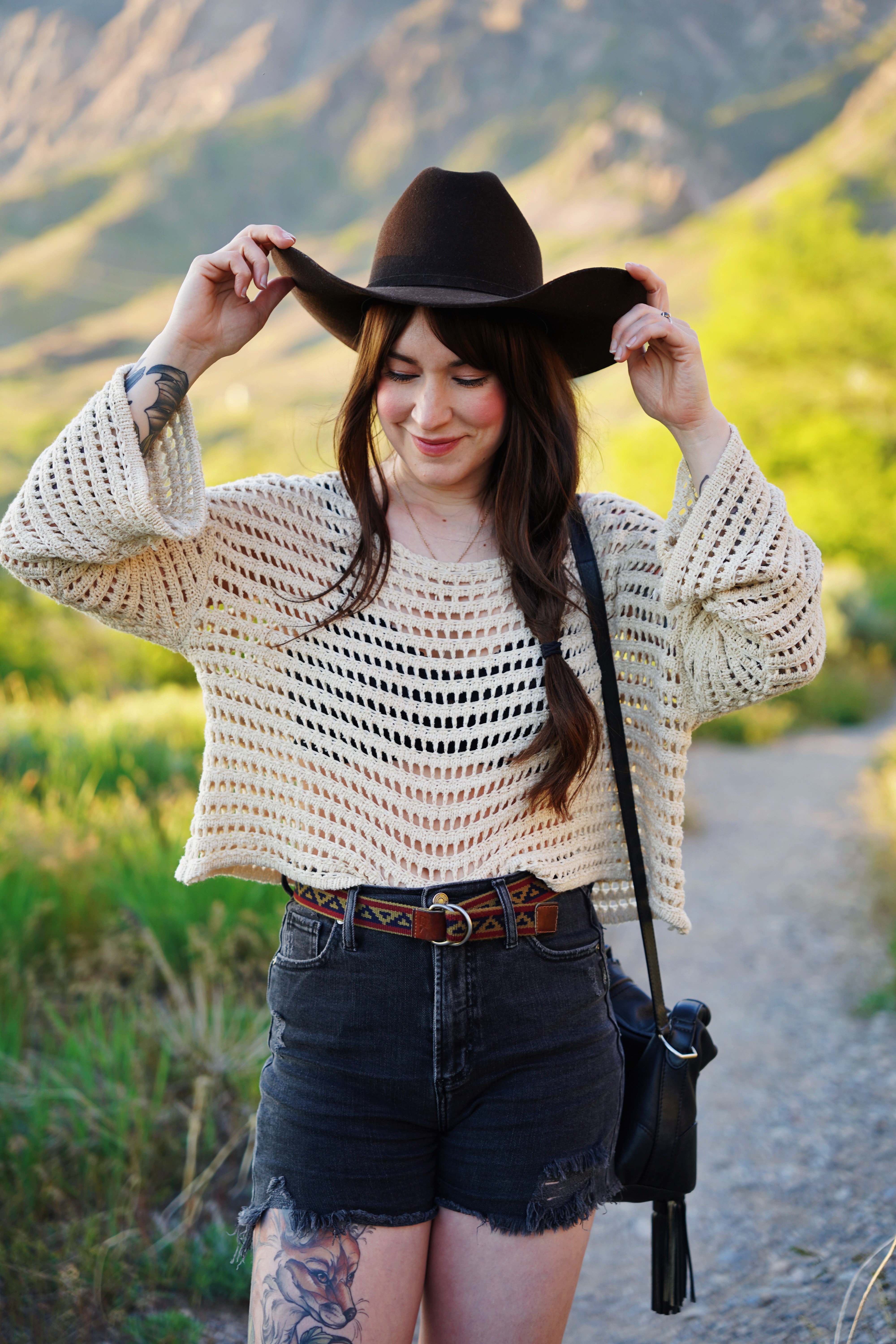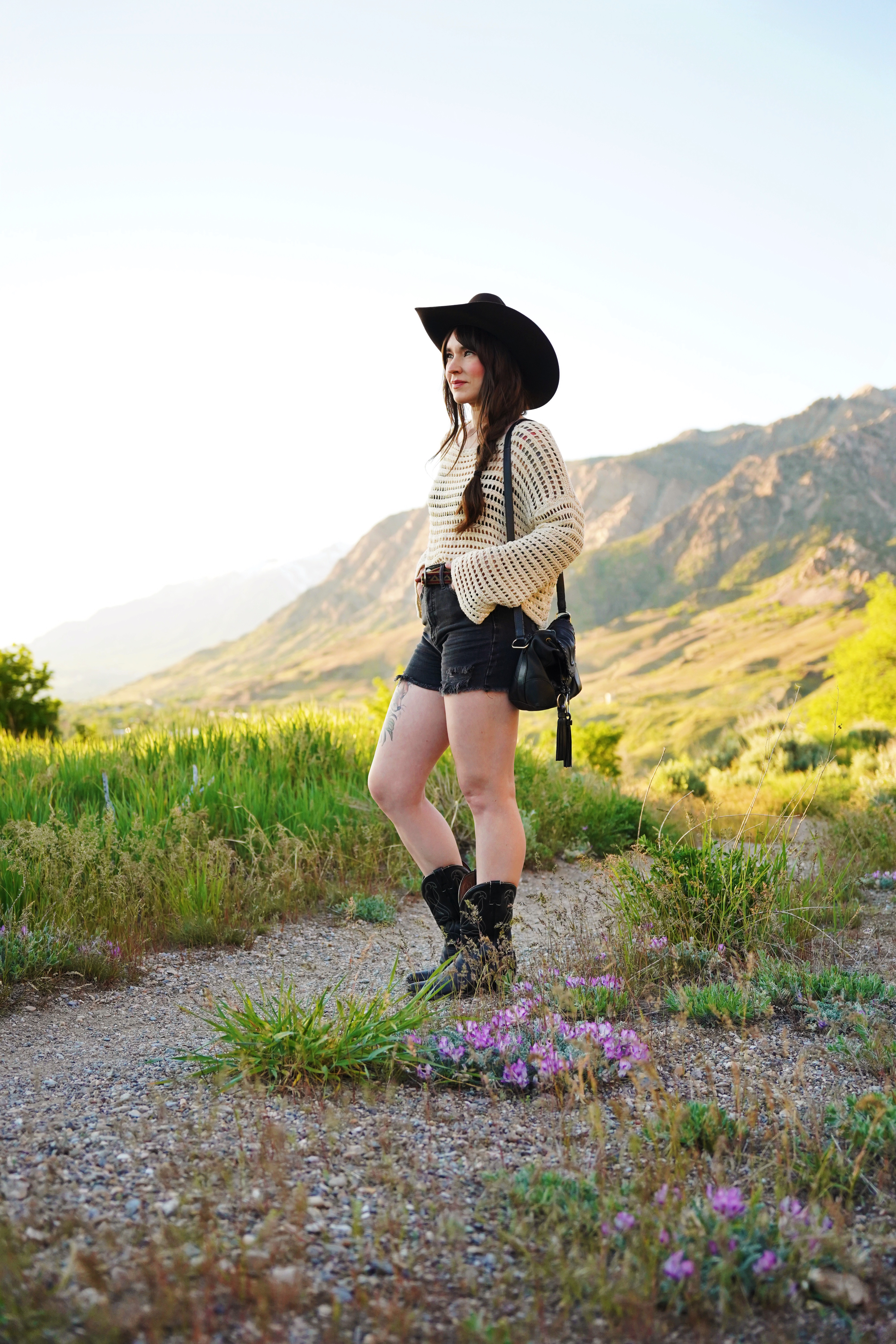 Outfit Details: Shorts: Silver Jeans Co / Hat: Justin Hats / Boots: Boulet (thrifted) / Top: Saide & Sage (similar style linked)