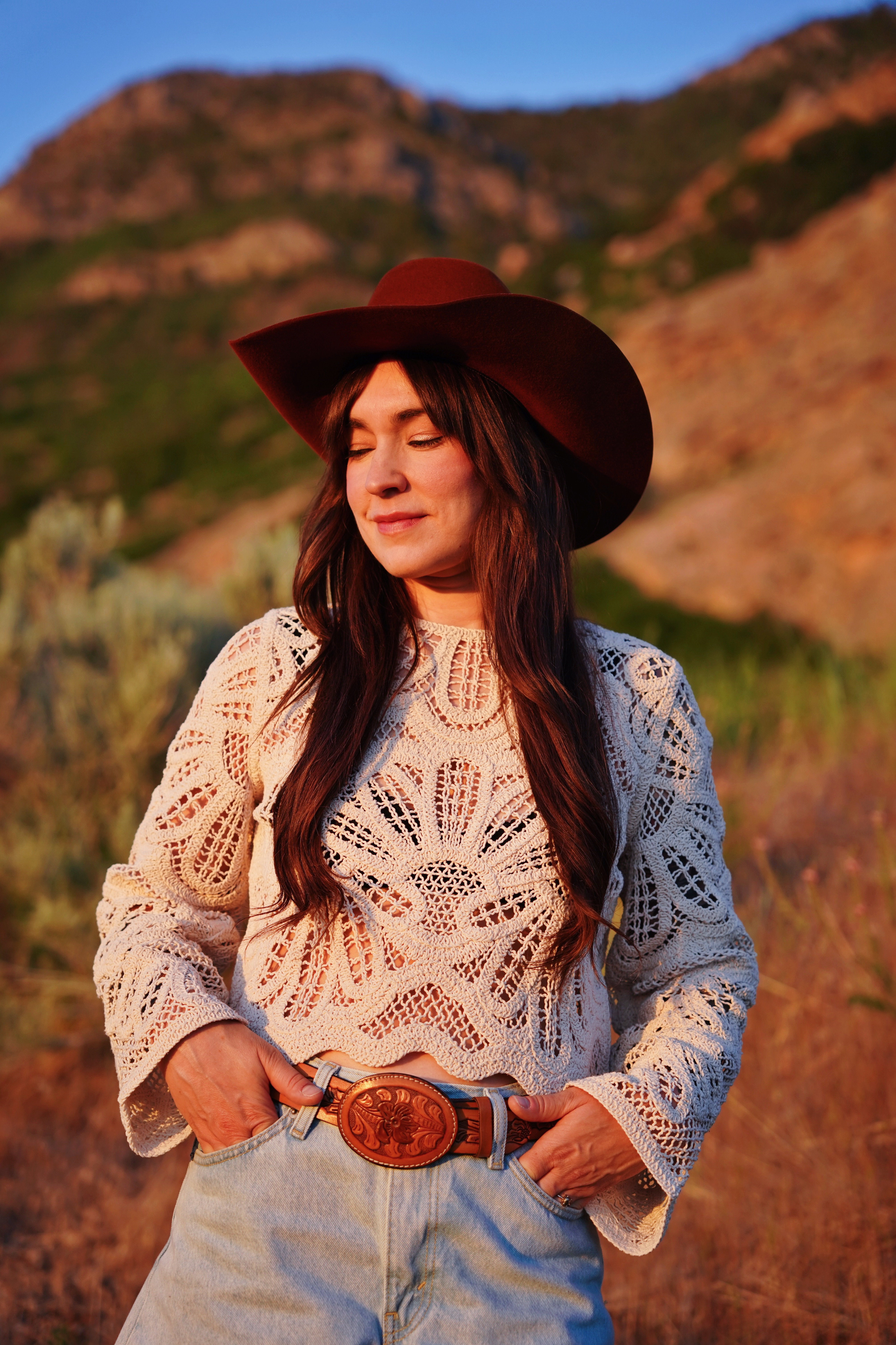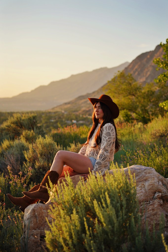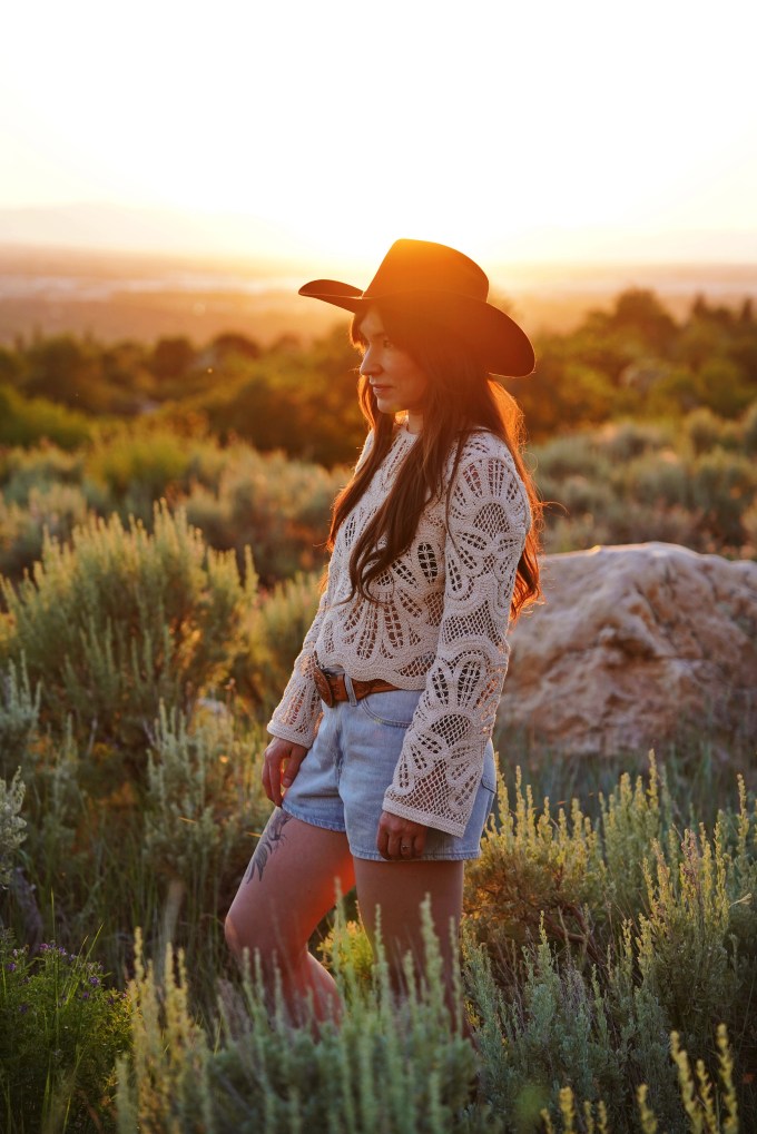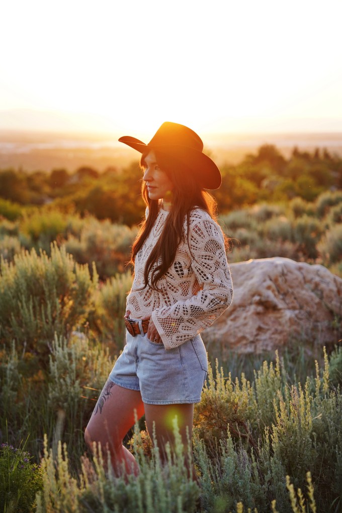 Outfit Details: Top: Sezane / Shorts: Levi’s / Hat: Resistol / Boots: Boulet / Belt: Good Gals Vintage
