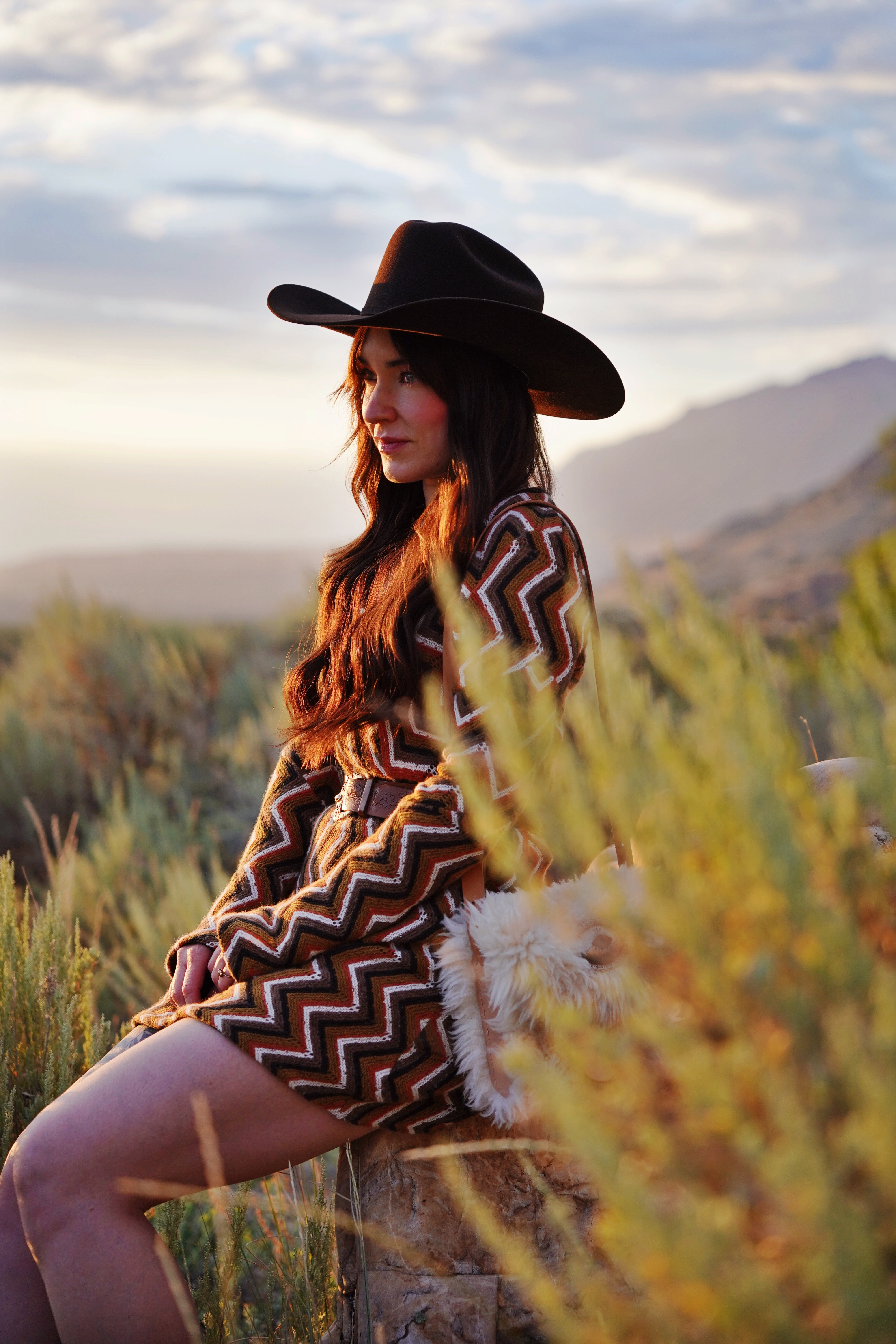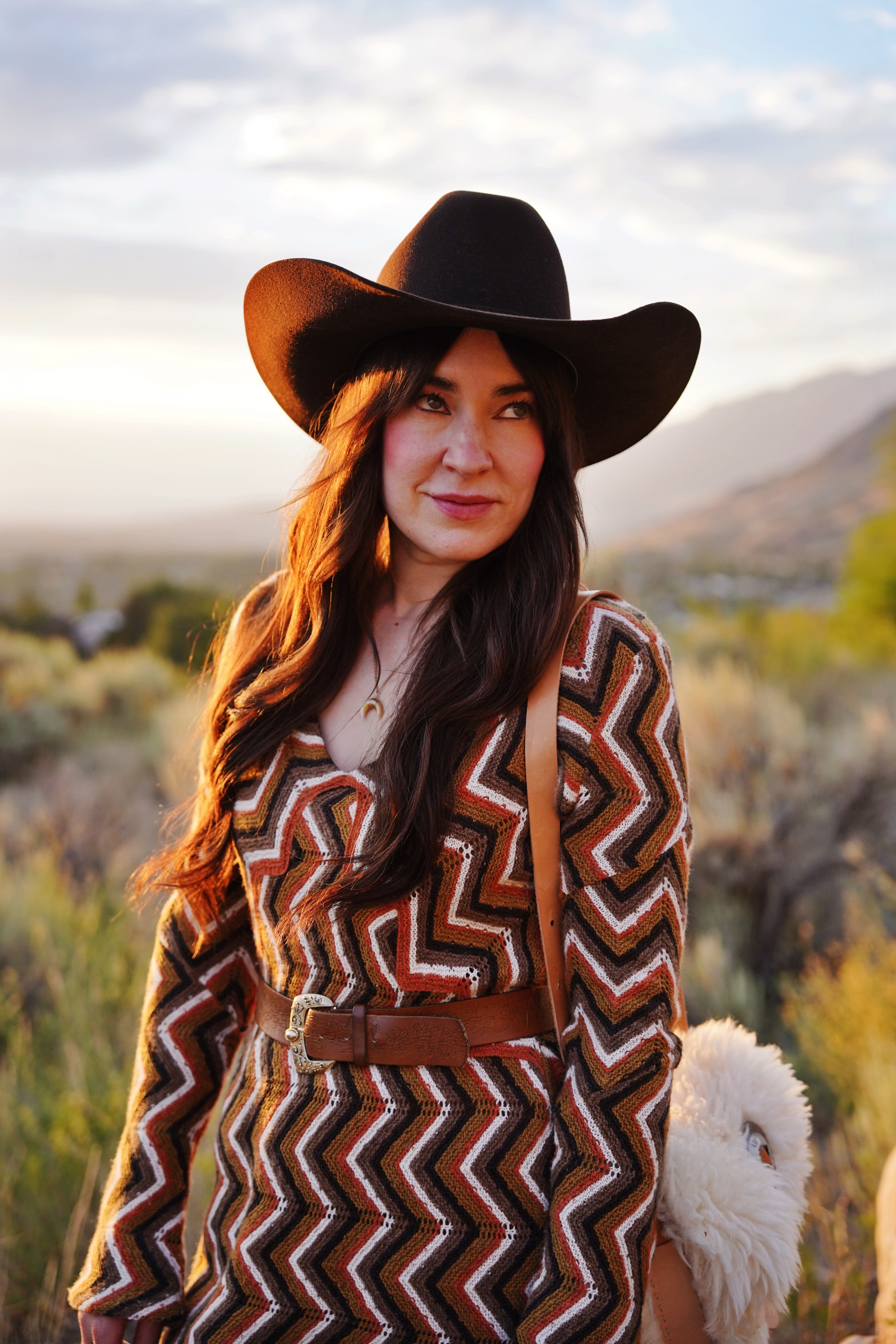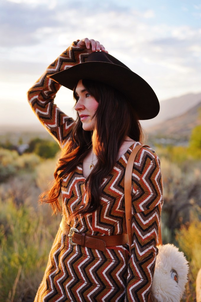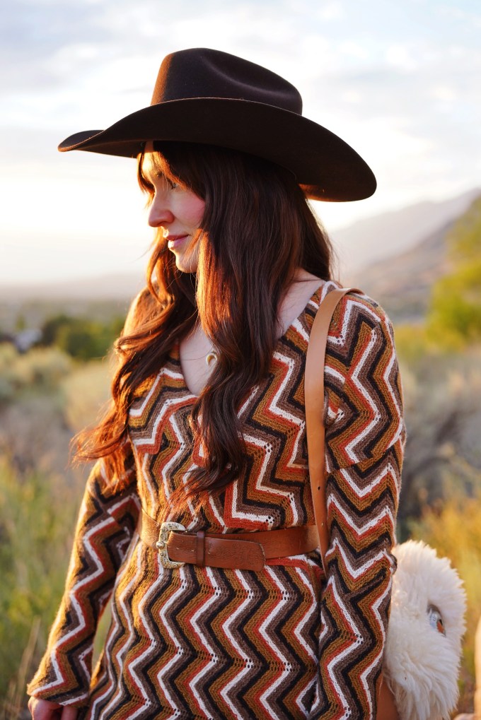 Outfit Details: Dress: Free People (old) / Hat: Justin Hats / Boots: Boulet / Bag: IDA and Moon / Belt: Good Gals Vintage