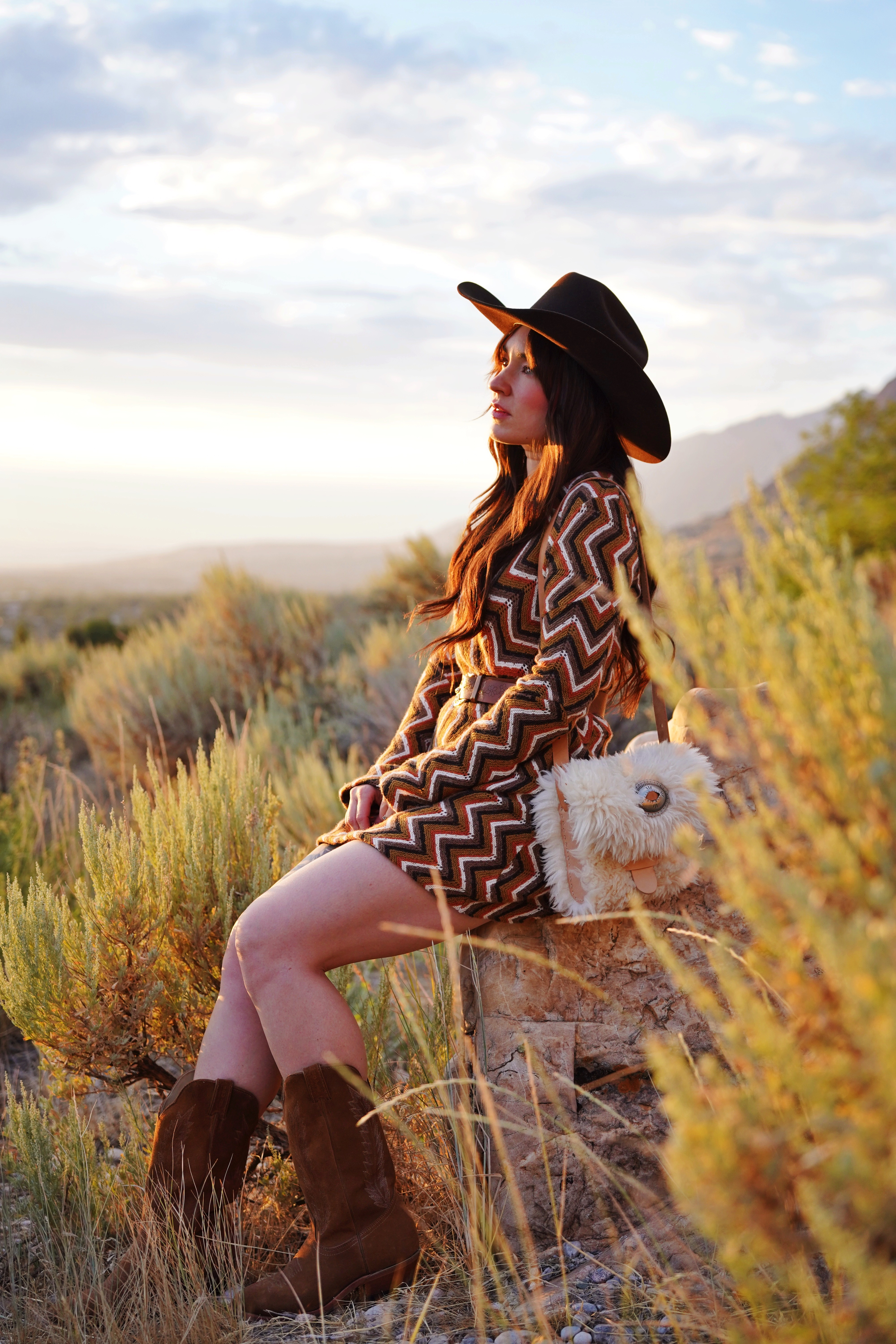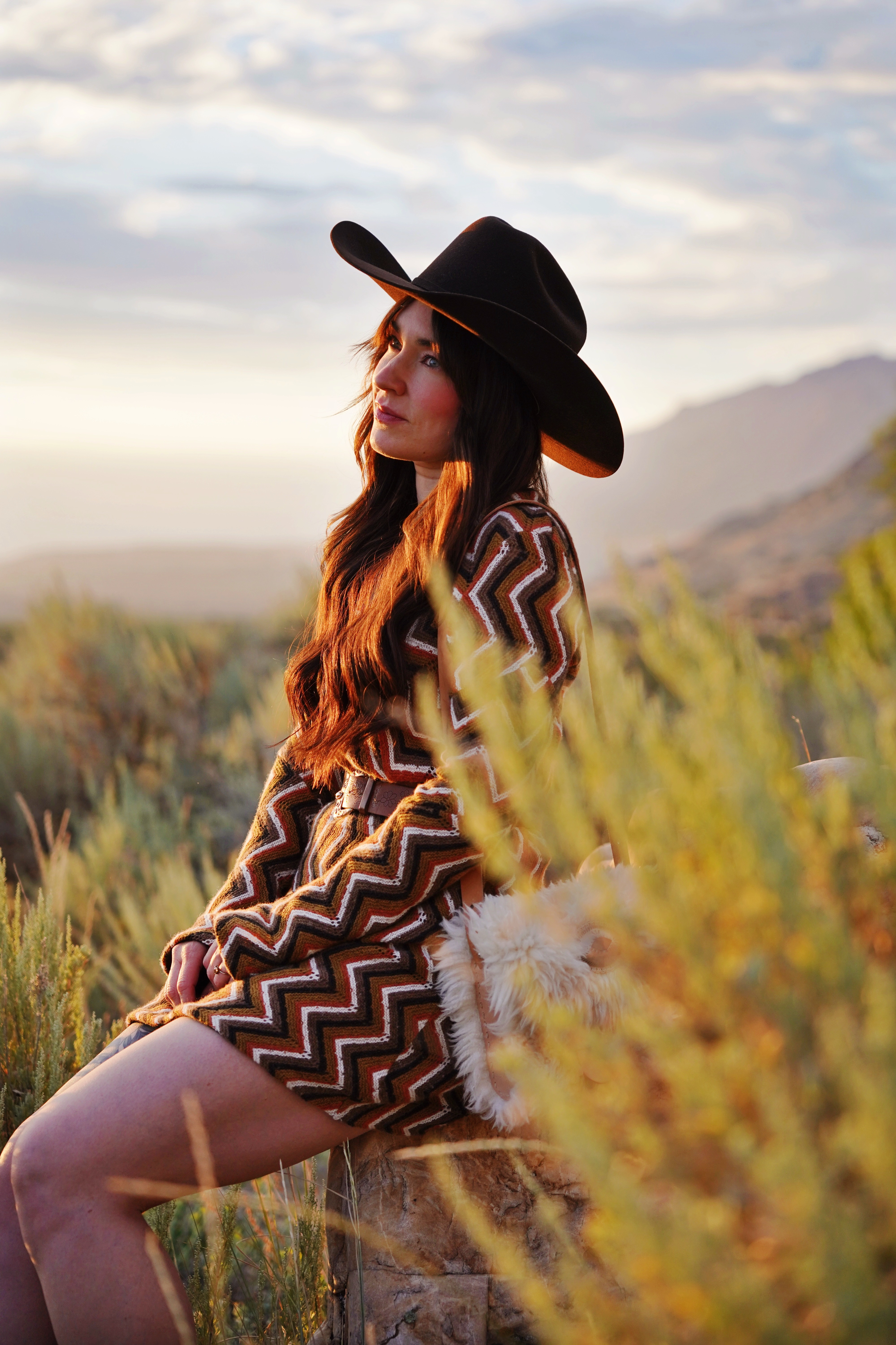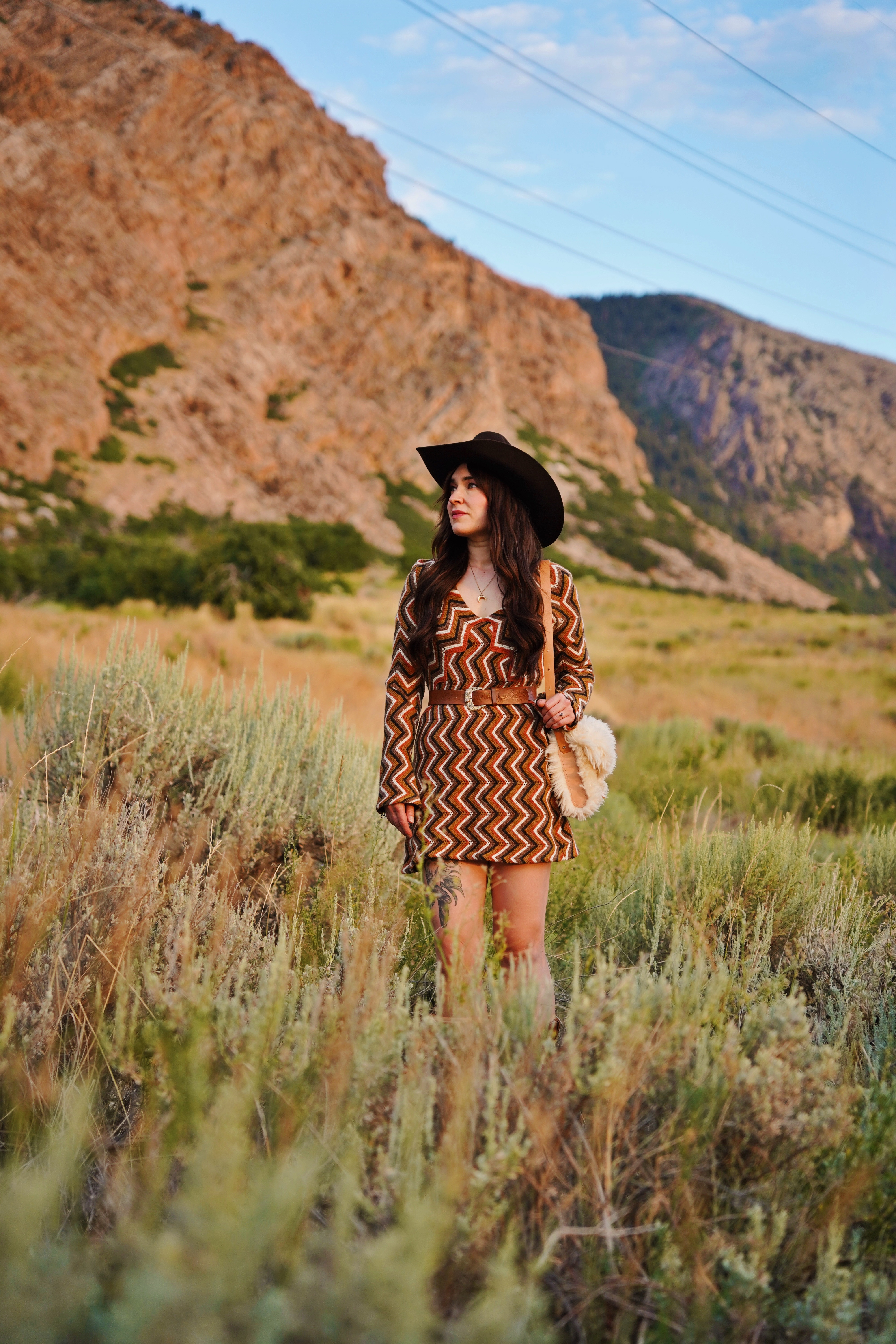 Outfit Details: Dress: Free People (old) / Hat: Justin Hats / Boots: Boulet / Bag: IDA and Moon / Belt: Good Gals Vintage