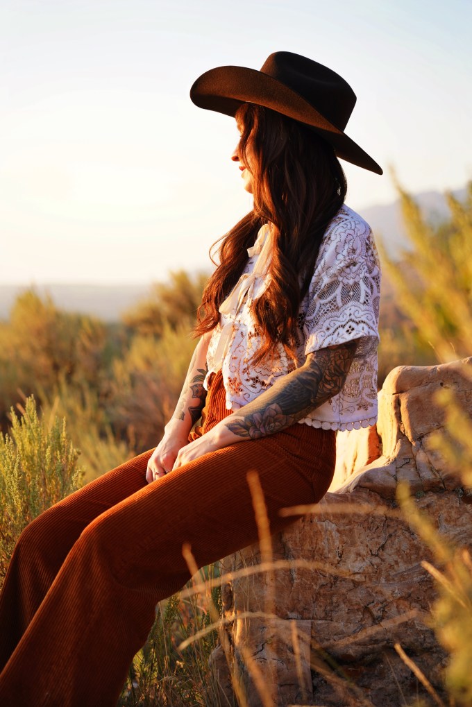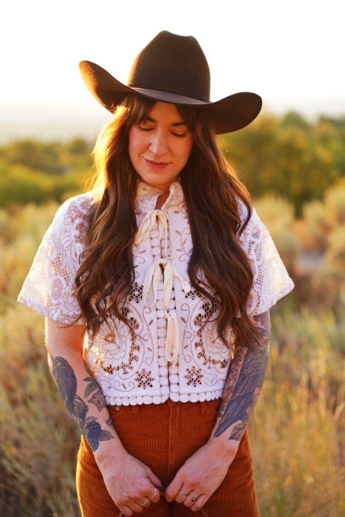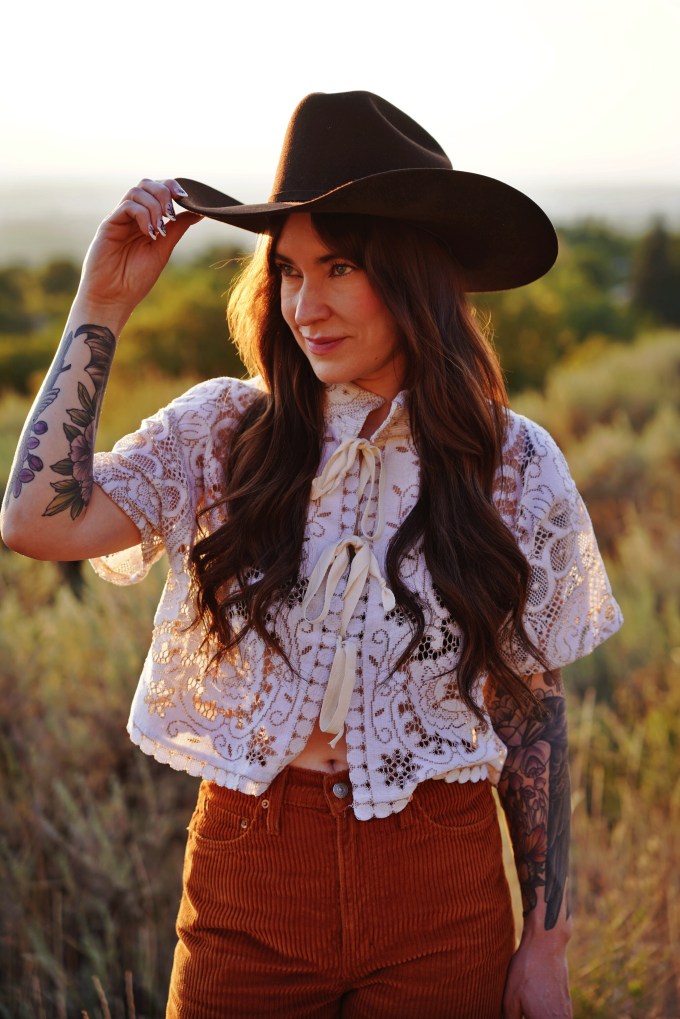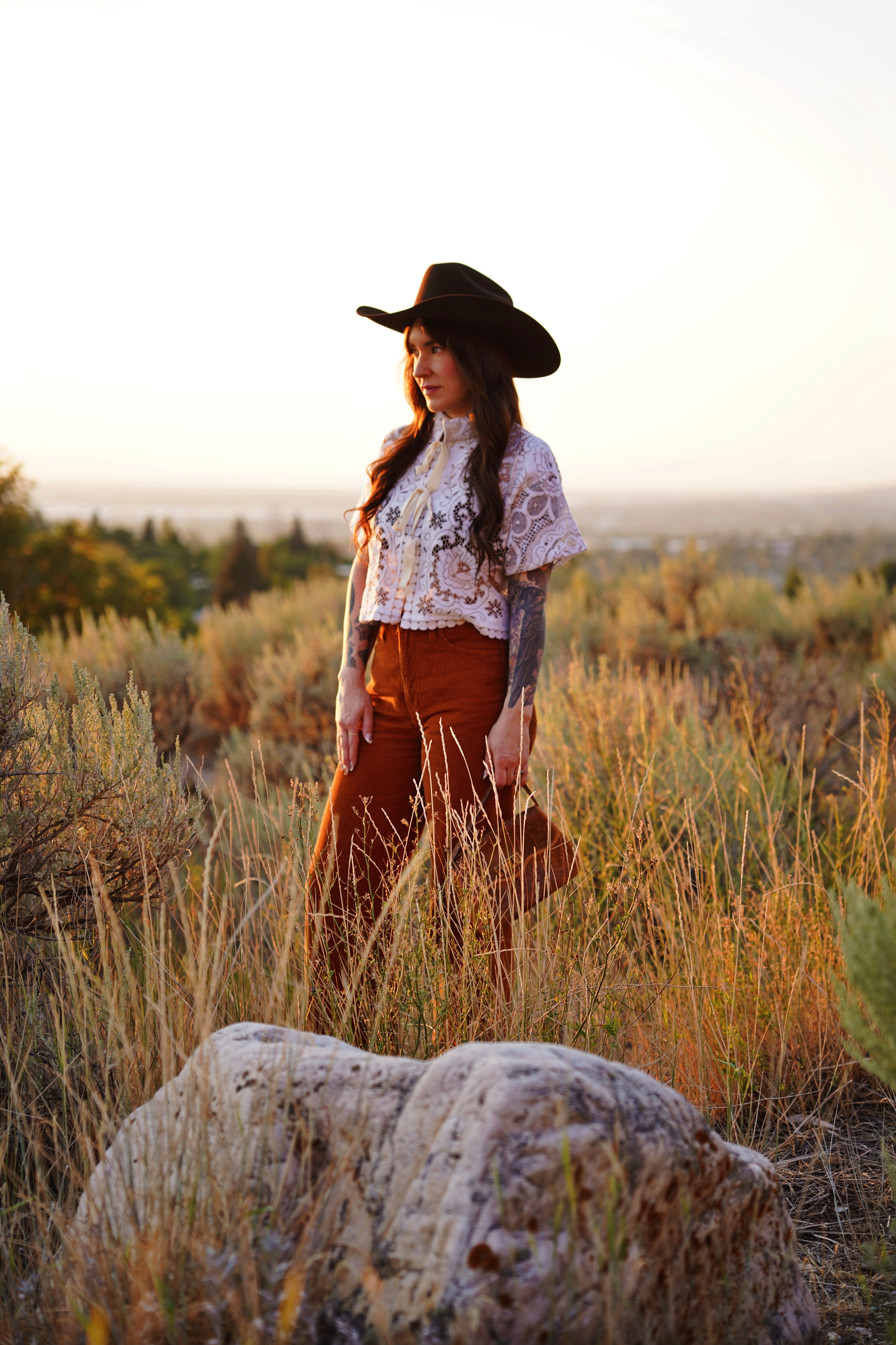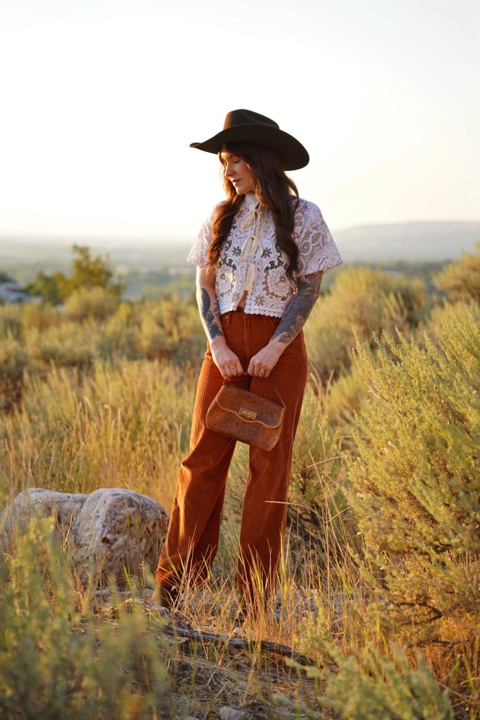 Outfit Details: Top: Montclair Vintage / Pants: Levi’s / Hat: Justin Hats