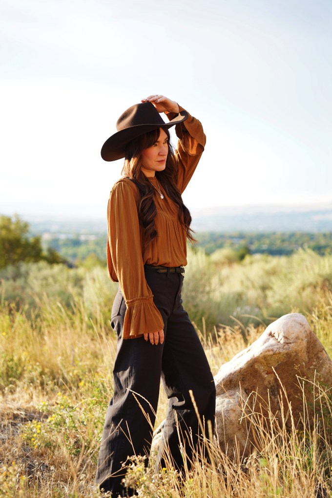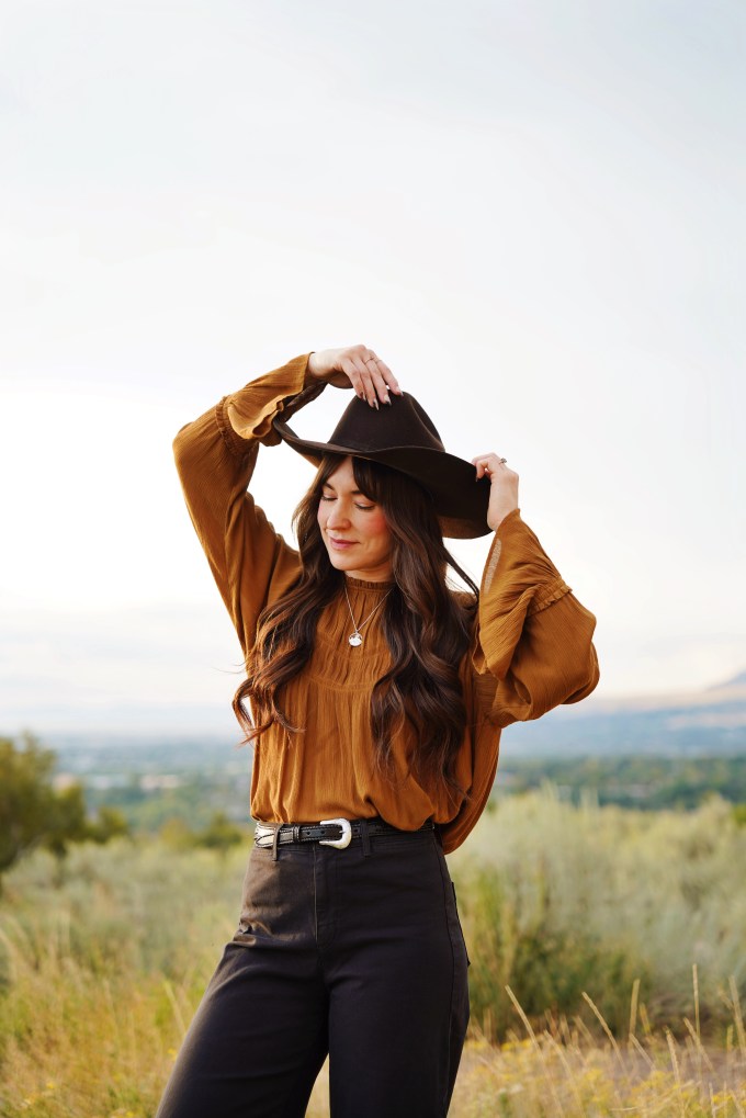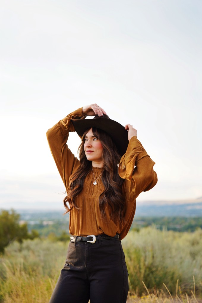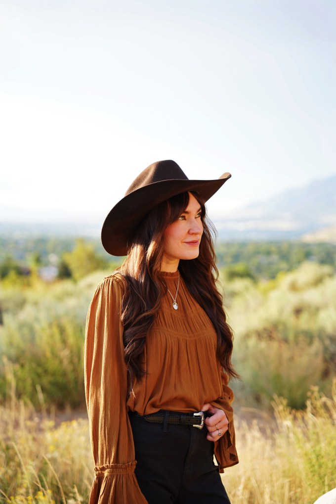 I recently heard someone say that you don’t need new clothes, you just need more accessories. I honestly think they’re on to something! Accessories elevate any outfit, and add a touch of personality. This necklace is from a local artist, Scott James Jewelry. It’s a beautiful piece, and a great addition to my collection! I also added a cowboy hat, and a belt to complete the look.