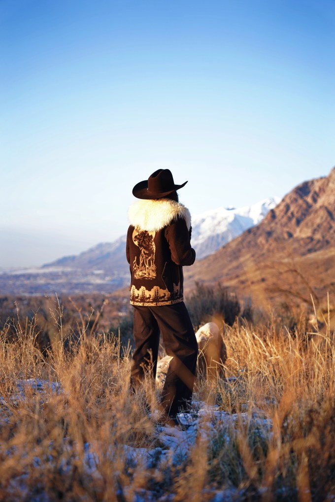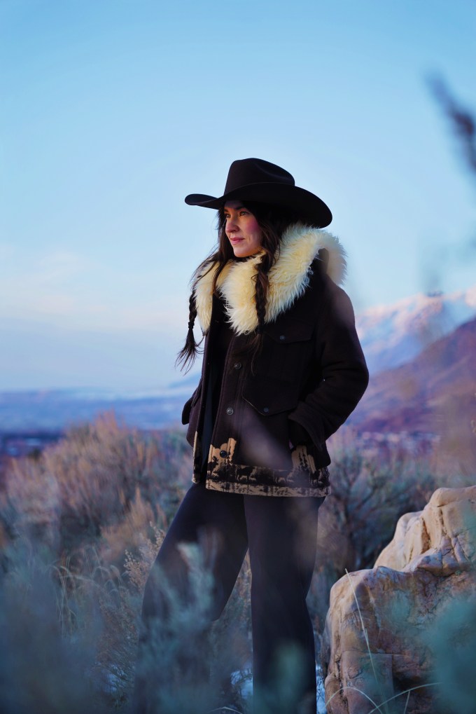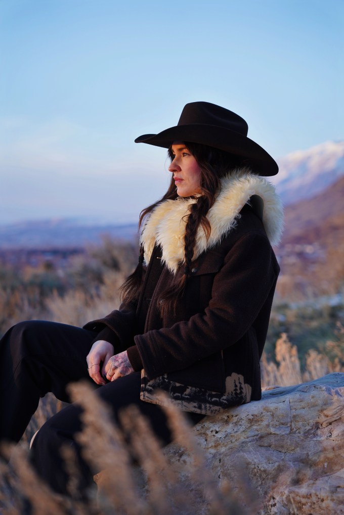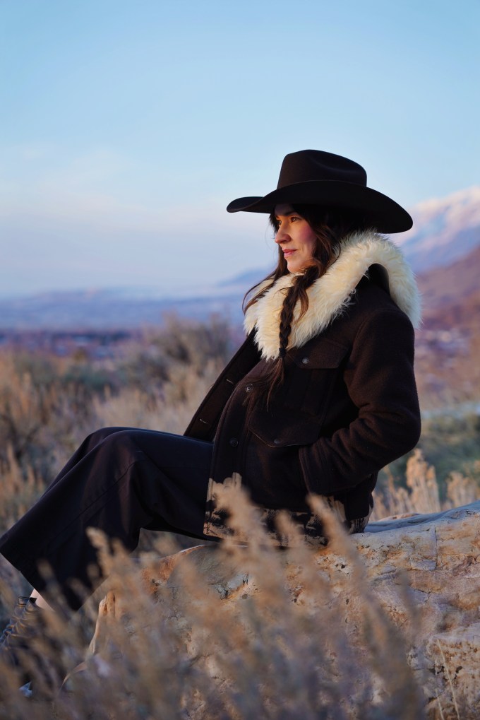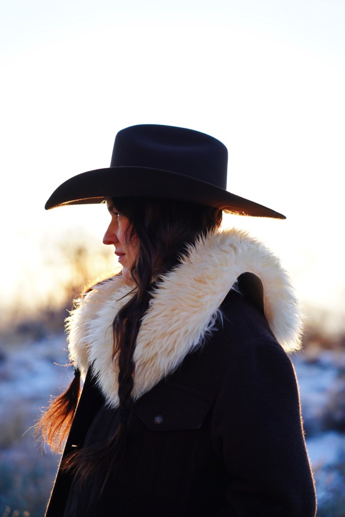 Outfit Details: Coat: Filson / Hat: Justin Hats / Collar: Ida and Moon / Pants: Levi’s / Boots: Miz Mooz