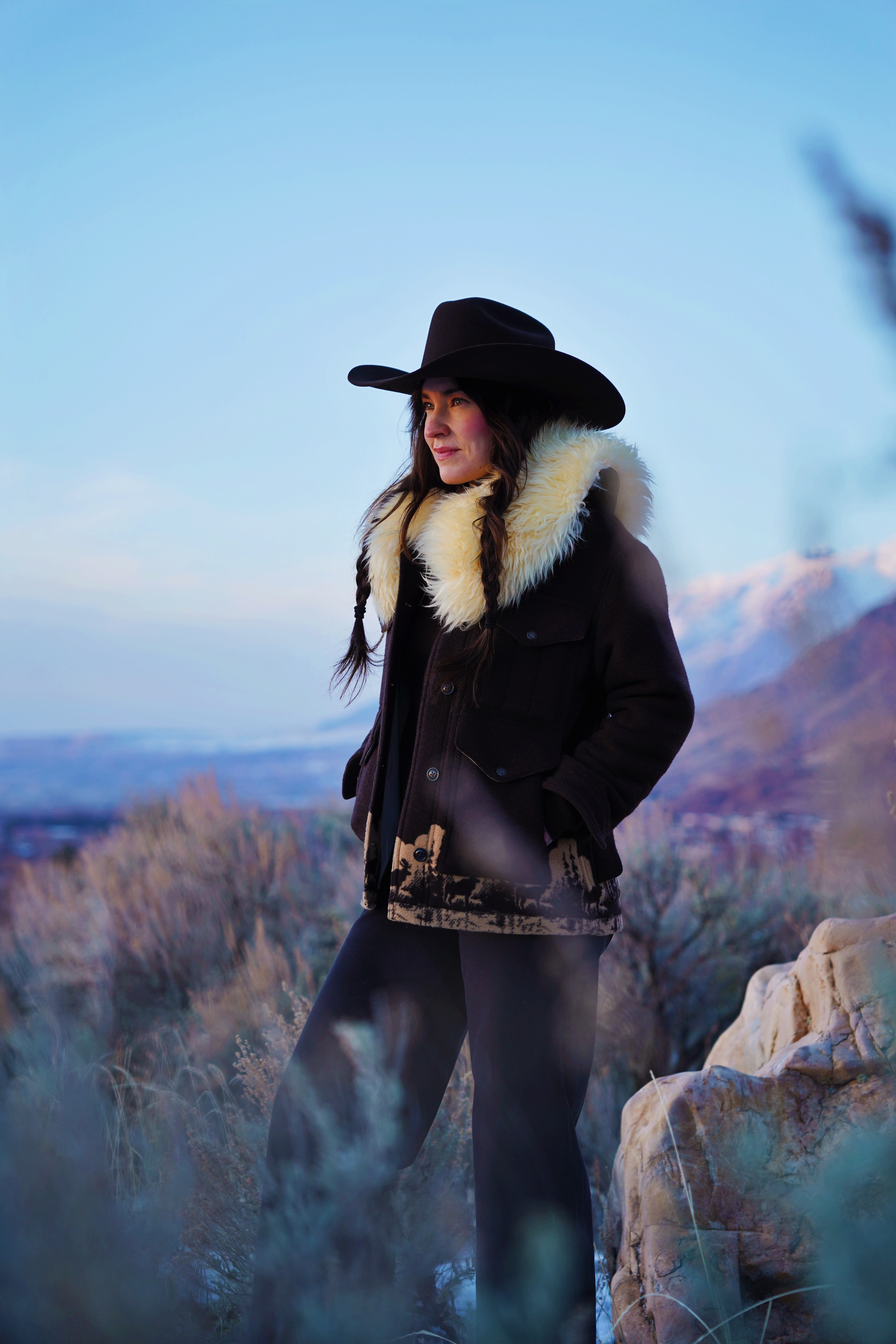 We finally got some colder weather in Ogden, so I’ve been able to wear my warm coats again. The winters in Utah have been a lot milder than i’m used to, but i’m not complaining! This wool Filson coat is nice and warm, and adding a sheep skin collar makes it even warmer. For the rest of the outfit I chose a pair of wide leg pants, and some black leather boots. This is one of my go to looks this winter!