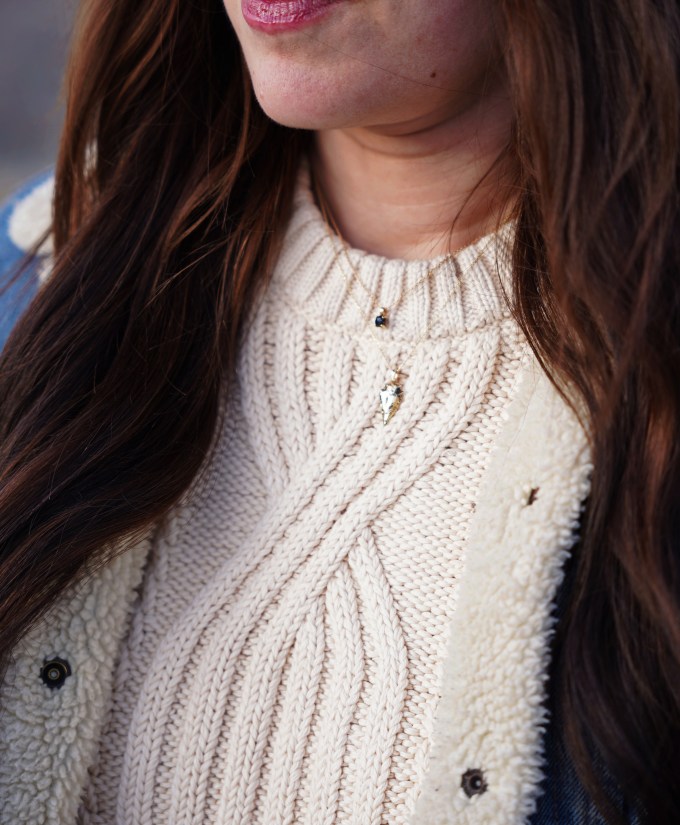 Denim on denim will always be a classic for me, and the classic’s never go out of style. Another item that I deem a classic is a cable knit sweater. This sweater in particular is a new addition to my wardrobe, it’s replacing another one that’s seen better days. For the rest of the look, I chose my favorite pair of Levi’s jeans, and some black boots.
