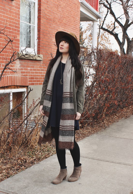 This is quite possibly the most comfortable poncho i’ve ever worn. It feels like i’m wearing a soft blanket around my shoulders and not an actual article of clothing. It’s awesome! The rest of the outfit consists of a basic cotton dress and some black booties. For accessories I added my favourite black floppy hat […]